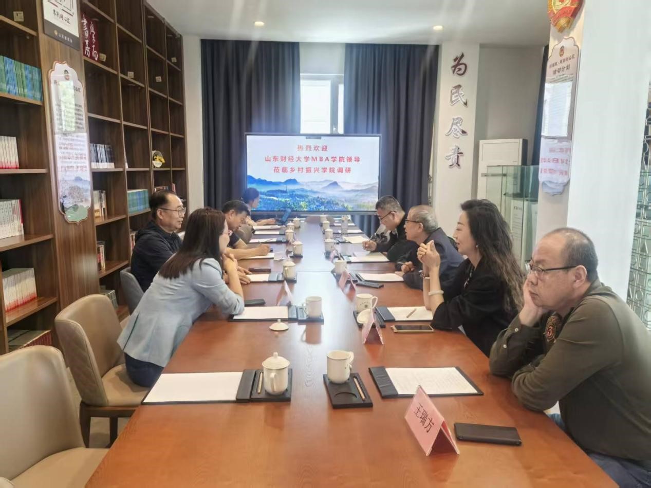 9月26日,MBA学院党委书记高峰、副院长张禹,办公室主任孙咏梅、社会服务部主任王瑞方、副主任史萌一行5人赴淄博沂河源田园综合体,对山东财经大学乡村振兴学院访问交流,乡村振兴学院副理事长徐思生、副院长杜瑞云、张凌云参与调研,并围绕社会培训、拓展合作领域进行深入探讨。