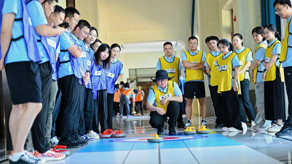 “旱地冰壶”项目是一场智慧与策略的较量,极大地锻炼了学员们对力量的控制、时机的把握和局面的判断能力。让学员深刻体会到,在明确的共同目标下,唯有团结协作、策略统一、坚韧不拔,才能赢得最终胜利。