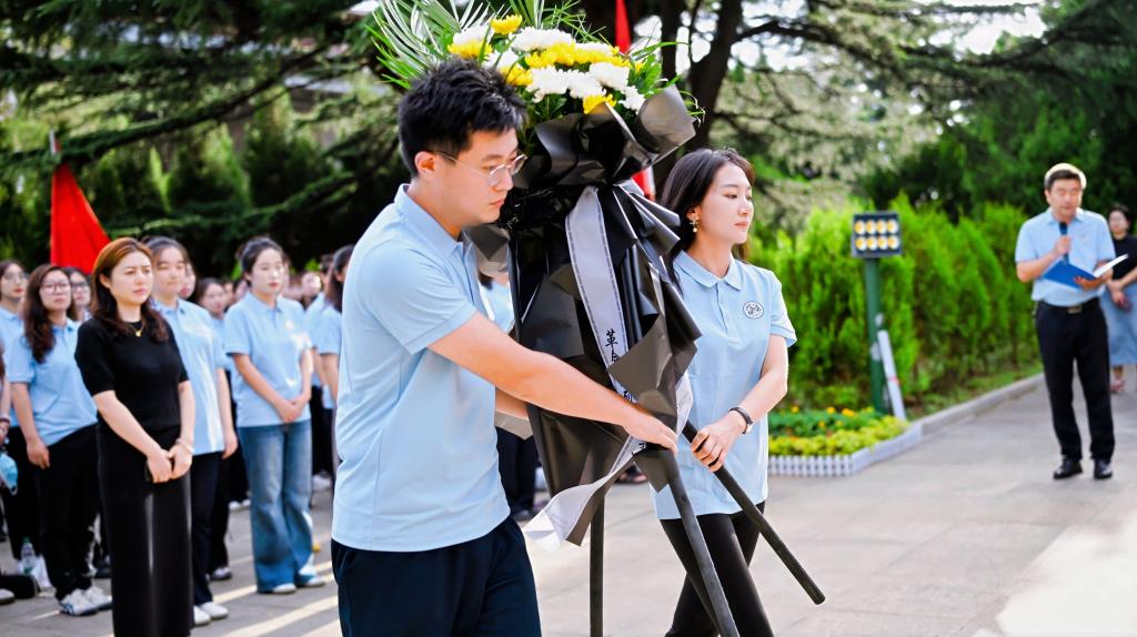 在入学红色教育中,学员们前往莱芜战役纪念馆进行实地研学。通过参观展览馆、全景画馆和互动体验区,大家沉浸式回顾莱芜战役的光辉历程和鲁中抗战的艰苦卓绝,进一步坚定了理想信念,增强了历史使命感与社会责任感。在庄严肃穆的革命烈士纪念塔前,全体学员举行了默哀与献花仪式,深切缅怀为民族解放事业英勇献身的革命先烈,并庄重宣誓:“我们铭记历史,缅怀英烈;传承红色基因,坚定理想信念;勇担时代使命,奋发图强前行;为实现中华民族伟大复兴贡献智慧与力量!”