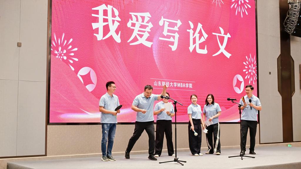 活动期间,全体师生欢聚一堂,举行了隆重而热烈的迎新晚会。晚会由王嘉正,吕波、卢俊成、王靖涵联袂主持。晚会以歌曲《童年》温情开场,百战归来再读书仍不舍青春岁月;京剧独唱《梨花颂》、贯口《莽撞人和玲珑塔》展现国粹艺术的独特魅力;《小酒窝》《悟空》《想去海边》,时而甜蜜、时而澎湃,洋溢青春气息。诗朗诵《我爱写论文》以幽默方式道出学子心声,让学长学姐直呼“太卷了”。报纸拔河、比划猜词等游戏环节穿插其中,现场互动热烈,笑声不断。男生合唱《壮志在我胸》《真心英雄》气势恢宏,展现出MBA学子团结一心、奋发向上的豪情壮志。诗朗诵《复兴路上的青春告白》铿锵有力,表达新时代青年的责任与担当;大合唱《我和我的祖国》深情澎湃,抒发了对祖国的热爱与祝福,将晚会推向高潮。