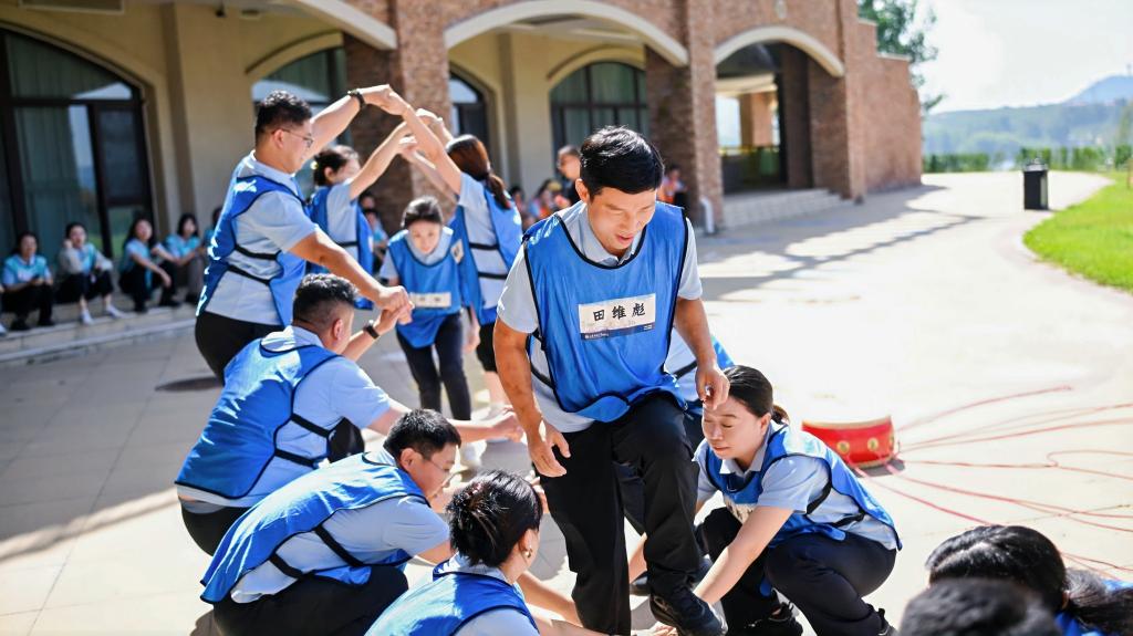 "挑战150"综合团队项目将团队协作推向新高度。各团队争分夺秒,力争在150秒内连续完成能量传输、击鼓颠球、团队节拍等一系列高难度任务。通过高效沟通、精准分工和流程优化,不断突破自我,展现出卓越的团队协作能力和应对挑战的韧性。