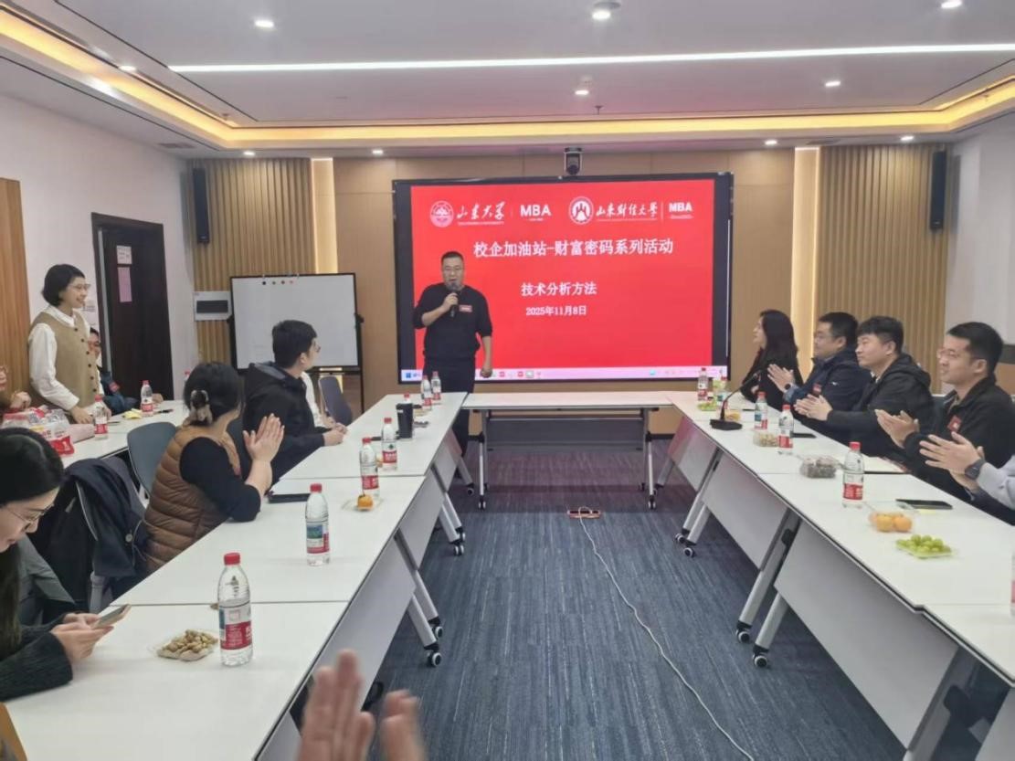11月8日晚,“校企加油站——财富密码”系列活动之金融投资实战智慧专场,在山东大学中心校区知新楼B517成功举办。本次活动由山东大学MBA联合会联合山东财经大学MBA联合会共同发起,山东财经大学2025级MBA3班与山东大学2025级MBA5班联合承办,以“小规模、高价值、深互动、重实效”为特色,汇聚20余位行业领军人士,开创了山东高校MBA跨校协作、资源互通、协同赋能的全新模式。