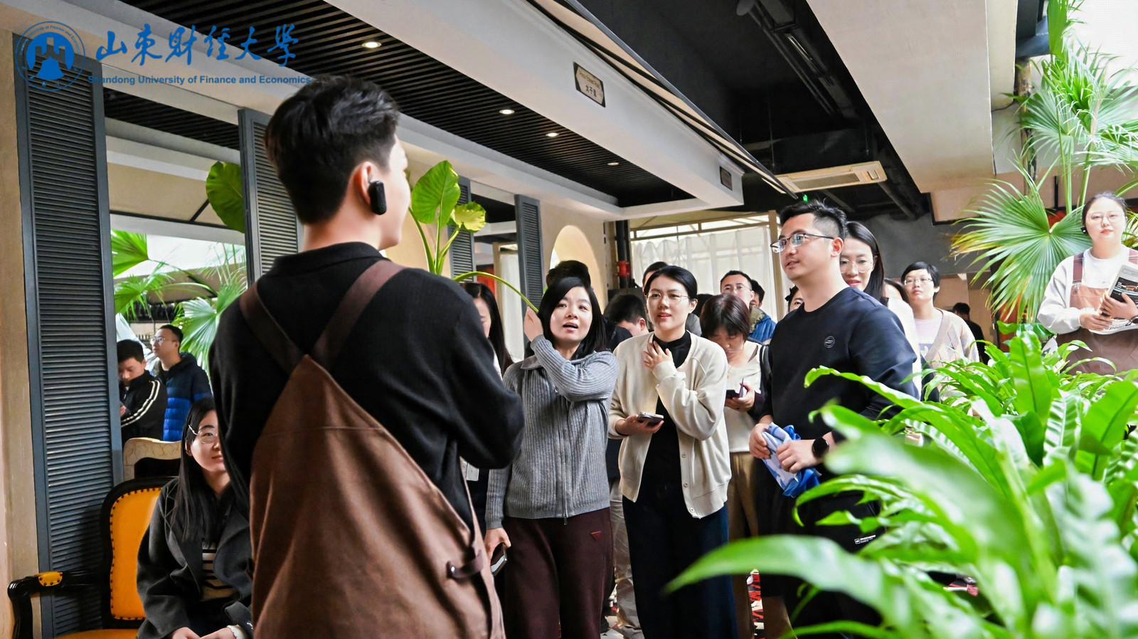 在山东凯瑞商业集团相关负责人的引导下,师生们实地参观了集团旗下的多个代表性业态。在位于城市高点的泉客厅,同学们亲身体验了其融合城市景观、商务社交与品质餐饮的复合型空间运营模式;随后走访的观埠无界食堂,则以其打破传统堂食边界,整合线上线下资源,满足多元、便捷餐饮需求的新零售模式,引发了同学们的浓厚兴趣与深入思考。这些实地参访为同学们理解现代服务业创新提供了直观而生动的案例。