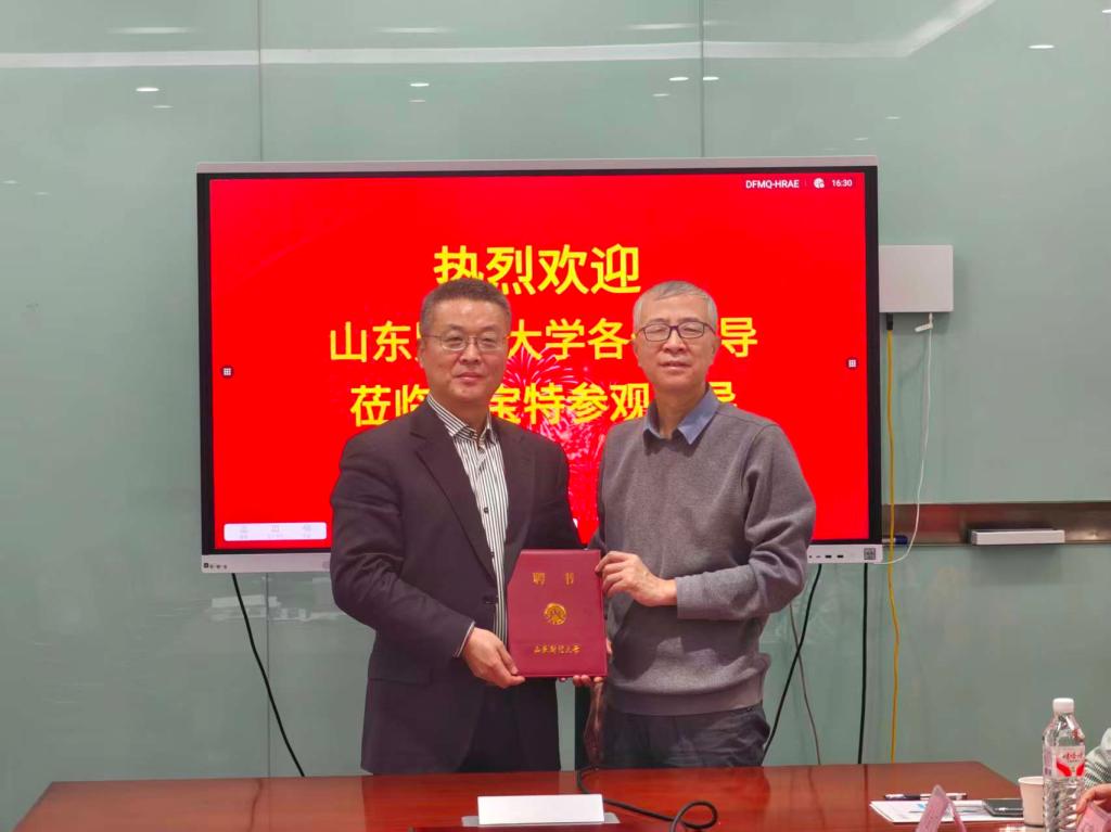 座谈会上,校企双方举行了校外导师聘任仪式。山东财经大学MBA学院正式聘任范永董事长为校外导师,高峰代表学院为其颁发聘书。此次聘任旨在将行业前沿实践经验与产业发展洞察引入课堂教学,丰富教学内涵、创新培养模式,切实提升学生的实践能力与创新素养。