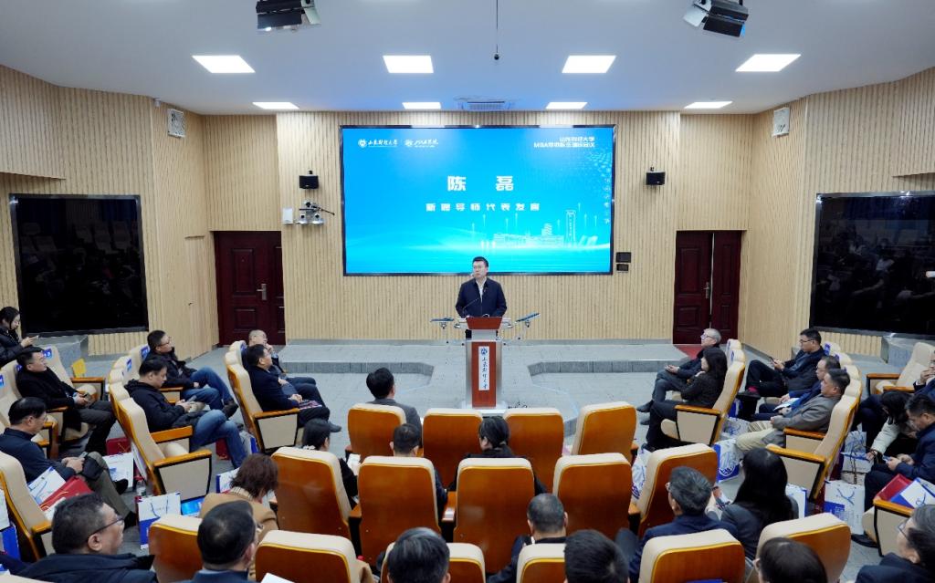山东发展新能源有限公司董事长陈磊作为新聘导师代表发言。他表示,将切实履行导师职责,努力做好学生成长成才的“引路人”、学科专业建设的“助推器”和校企产教融合的“联络员”,为学校MBA教育高质量发展贡献力量。