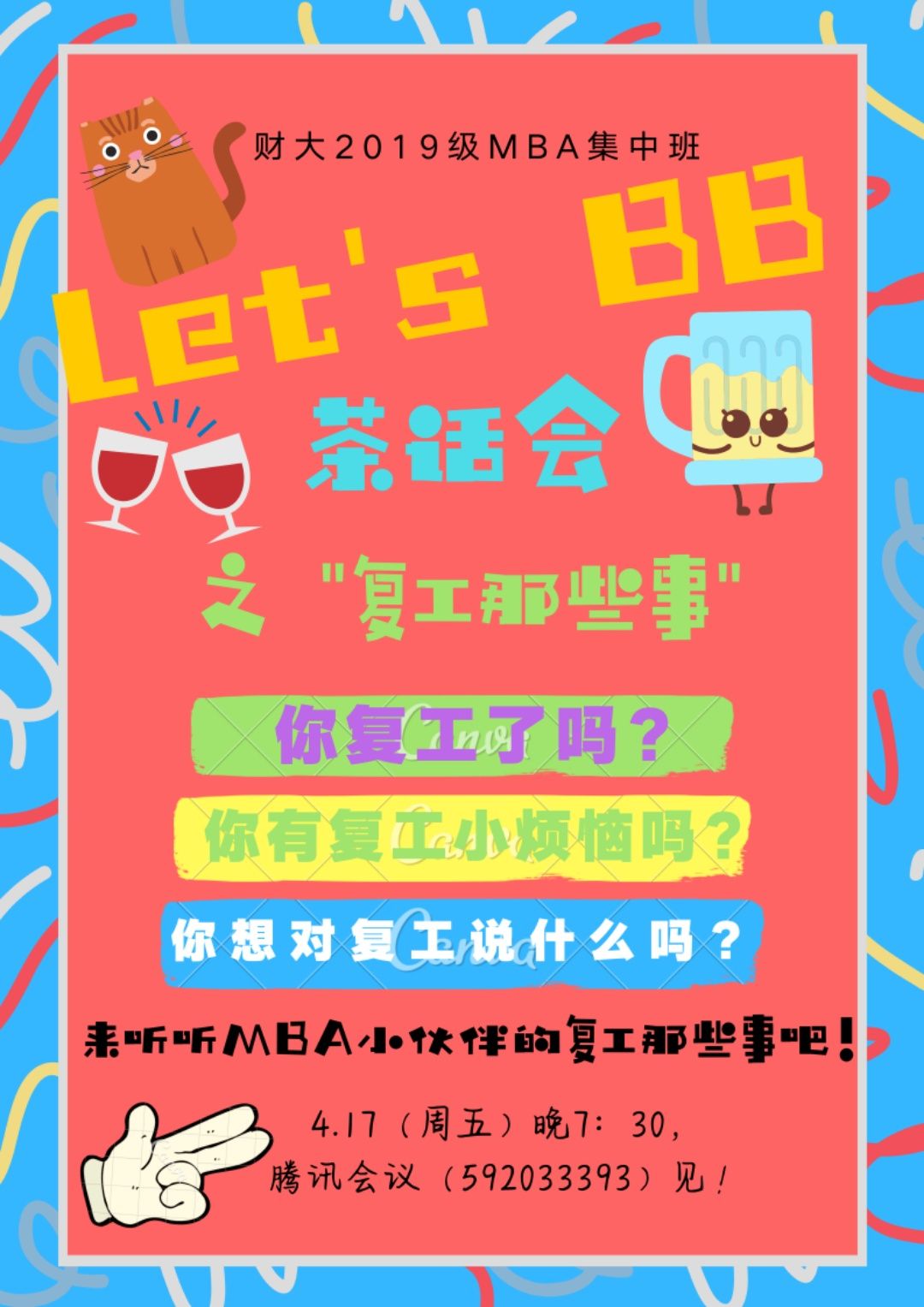山东财经大学MBA学院云上班级活动—2019级集中班 “Let's BB线上茶话会"成功举办开讲