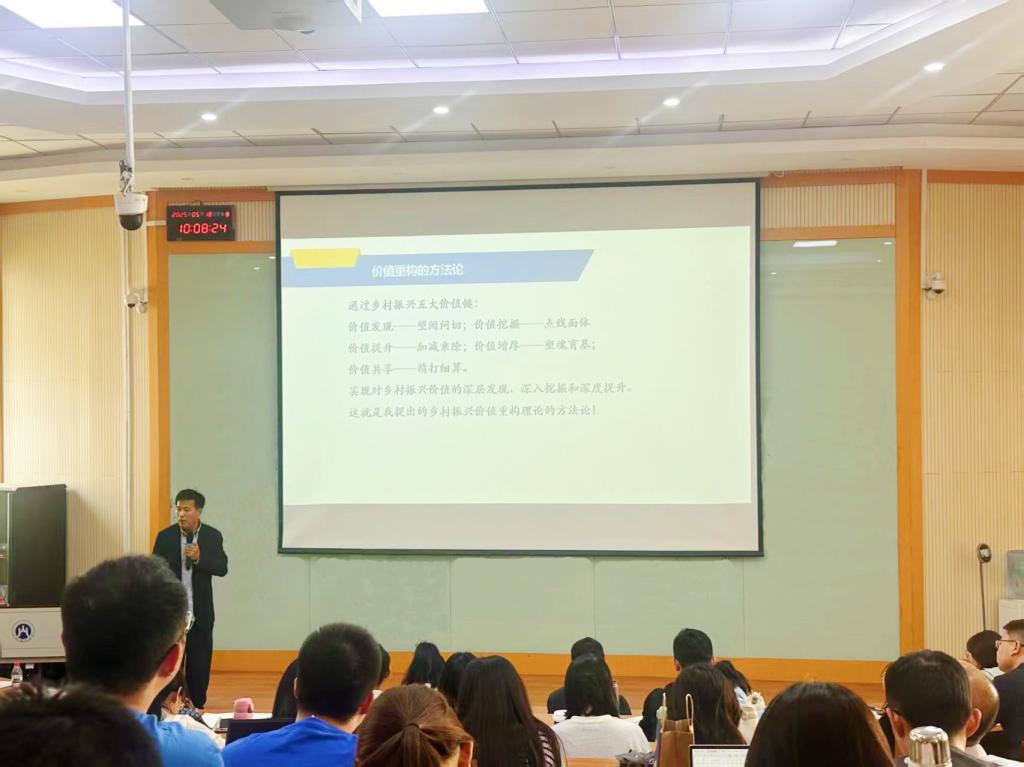 时间:2025年05月20日5月18日上午,山东财经大学MBA学院第144期鲁商大讲堂在舜耕校区举行。醴泉乡村振兴综合体联合发起人、醴泉乡村振兴战略推进委员会主任,山东财经大学产业发展研究院院长、二级教授、博士生导师张志元做了题为《醴泉乡村振兴综合体的探索与实践——乡村振兴价值重构理论的提出》的专题报告。MBA学院副院长孙文刚主持活动,学院师生校友近200人参加活动。