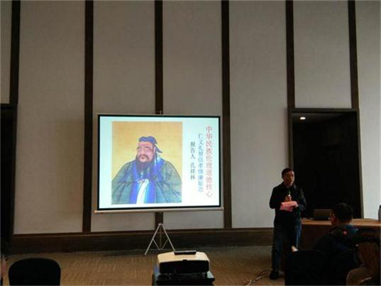 随后,国学讲堂邀请到国际儒学联合会理事兼中国孔子基金会理事——孔子七十五代孙孔祥林教授,从“仁义礼智信、孝悌廉耻忠”10个方面阐释了儒家思想,并结合习总书记在孔子研究院座谈会上提出的“如何理解忠孝节义、仁义礼智”,来剖析中华民族的道德核心。