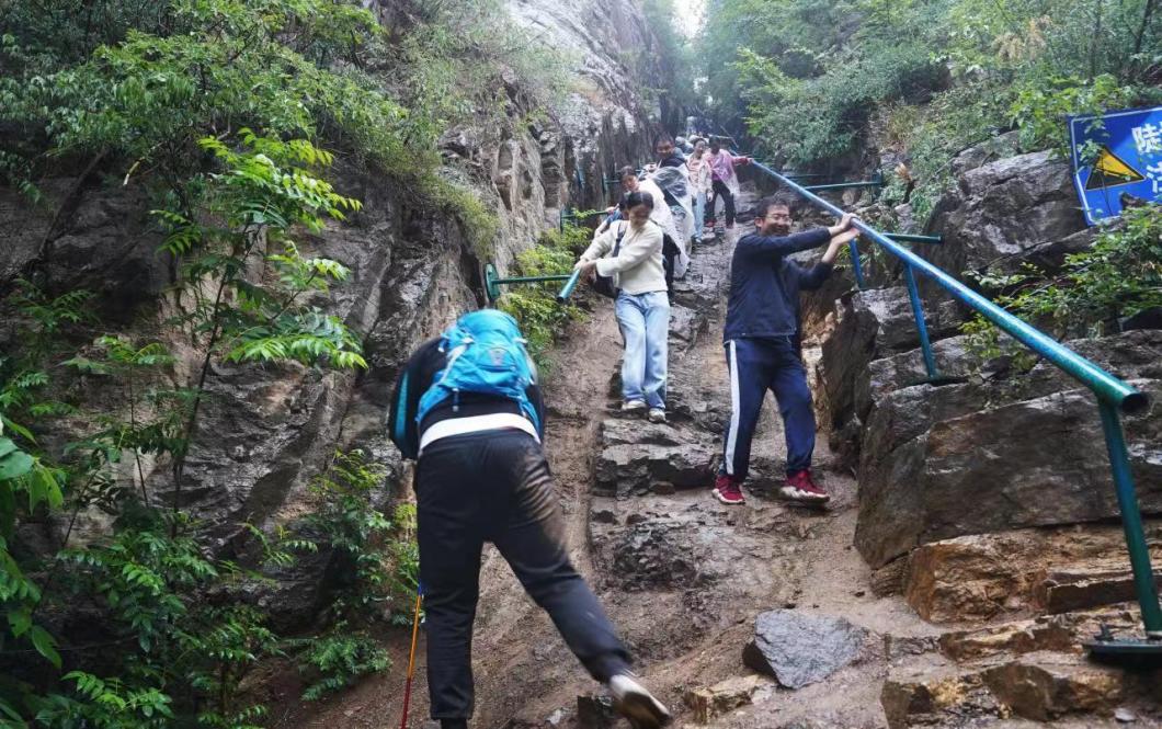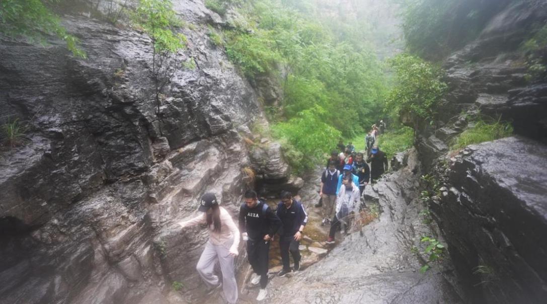 同学们按照既定路线,从浆水泉水库准时出发,一路上欣赏千沟万壑、茂林秀峰、溪水潺潺、鸟语花香的自然美景。同时,克服雨水天气带来的不良影响,团结协作、挑战自我,在泥泞的道路上一步一个脚印,挥洒汗水,探讨知识。