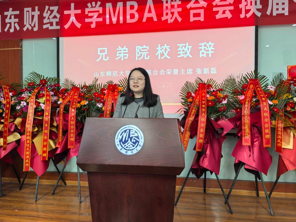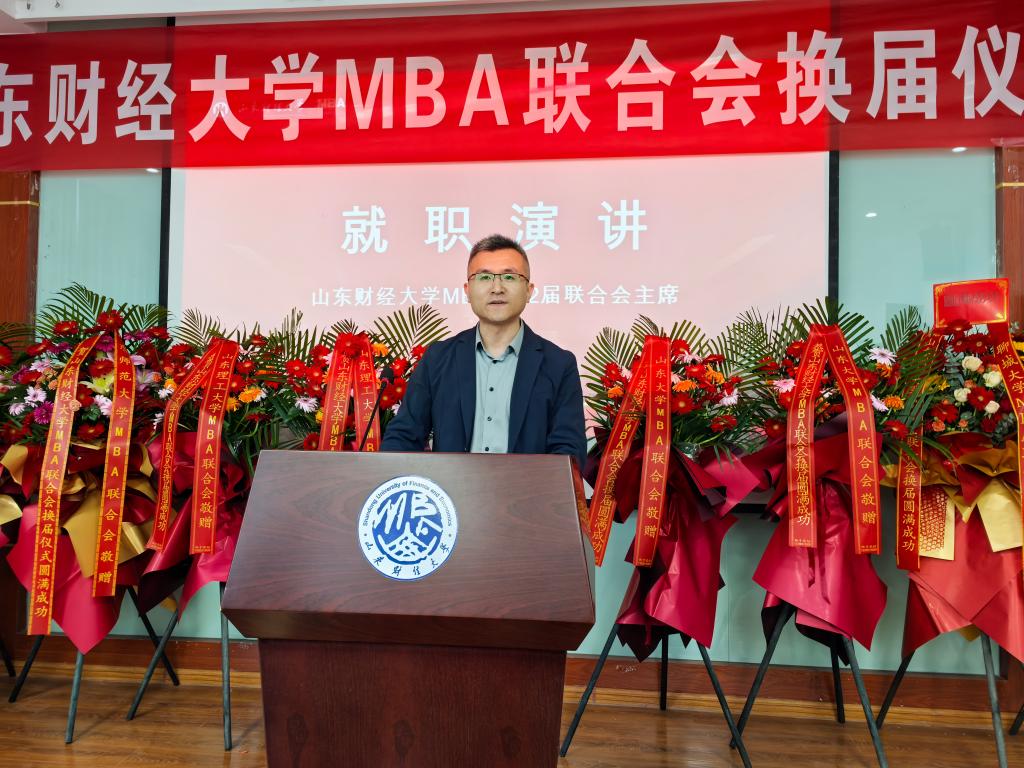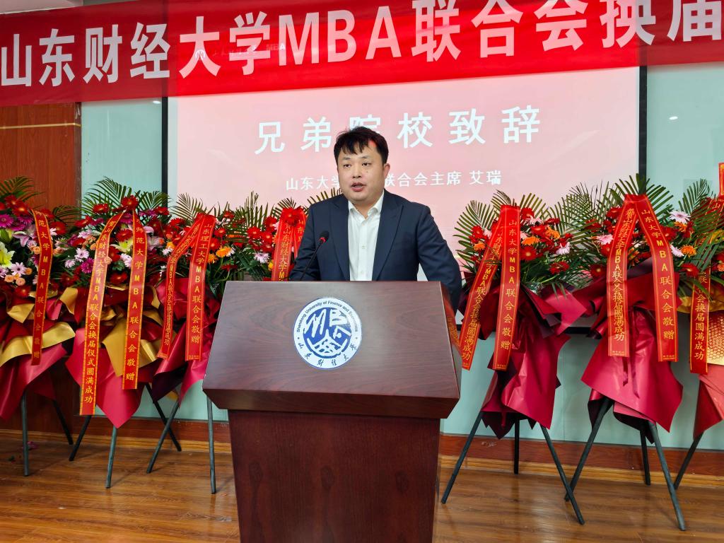 聘任仪式中,山东大学MBA联合会主席艾瑞、山东师范大学MBA联合会荣誉主席张新磊、山东理工大学MBA联合会主席鲍学伟、聊城大学MBA联合会主席孙磊回顾了与山东财经大学MBA联合会在过去交流与活动中结下的友谊与收获,希望在新一届联合会的促进下,可以创新开展更多的交流活动,搭建高质量的MBA交流共享平台,互相促进,共同发展。