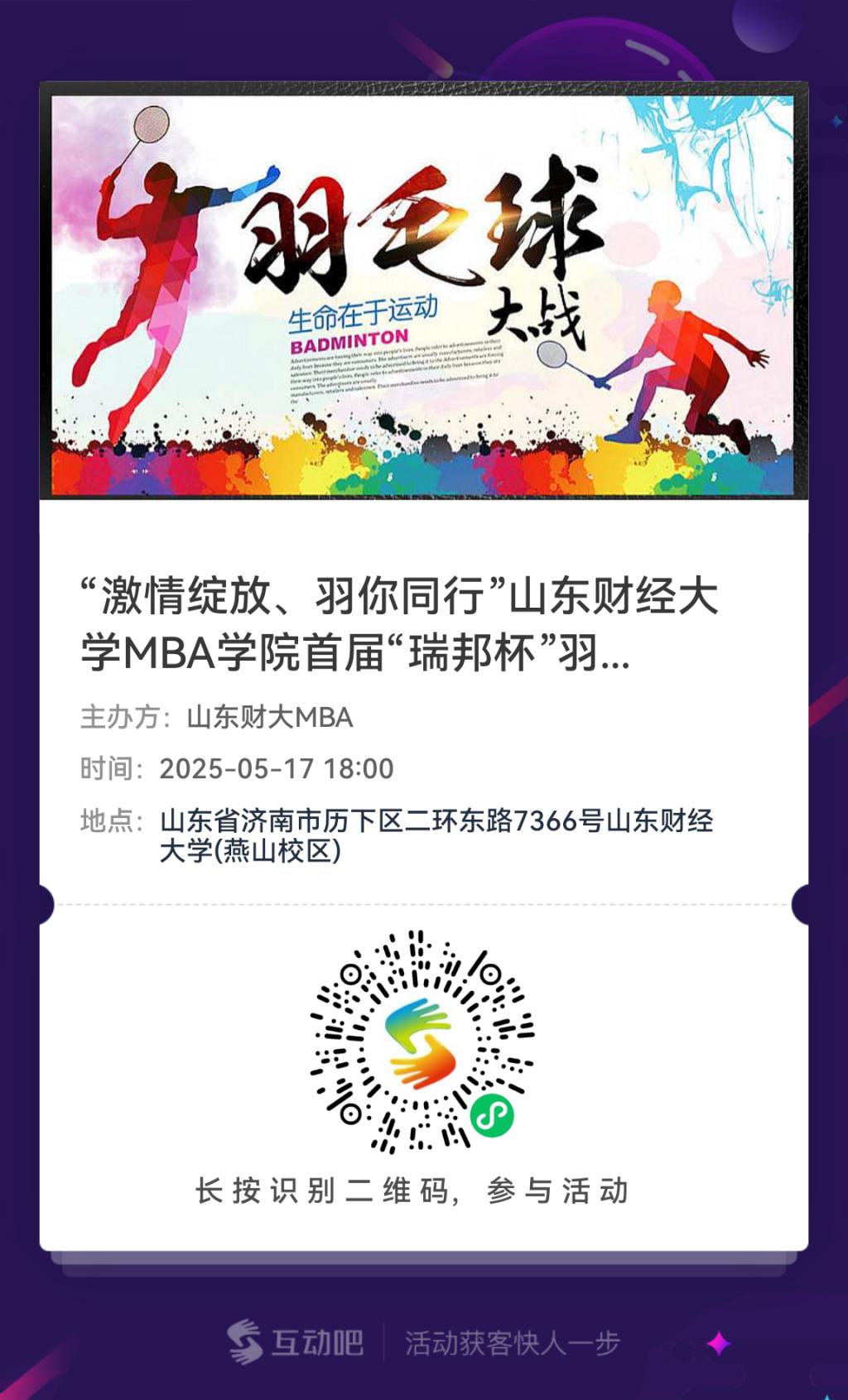 “激情绽放、羽你同行”山东财经大学MBA学院第一届“瑞邦杯”羽毛球赛