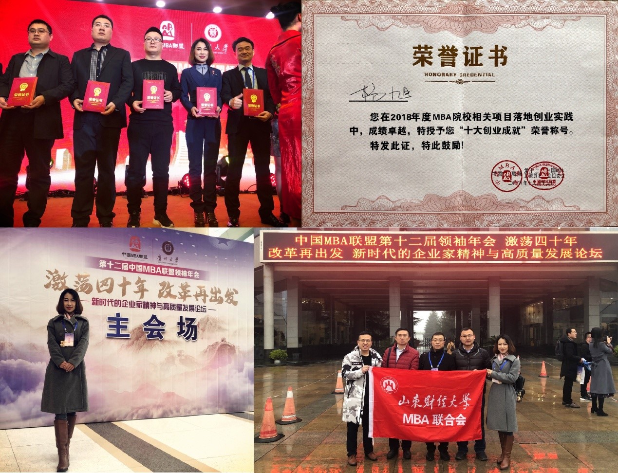 你若盛开,蝴蝶自来。当我努力绽放自己,不断挑战磨砺自己的时候,机会也悄悄来到了我的身边。2018年新年伊始,2017级十几名MBA同学经过前期筹备,共同成立了山东财创信息科技有限公司。我毅然辞去了原来的工作,加入了财创科技,也因此获得2018年度全国MBA联盟“十大创业成就奖”。