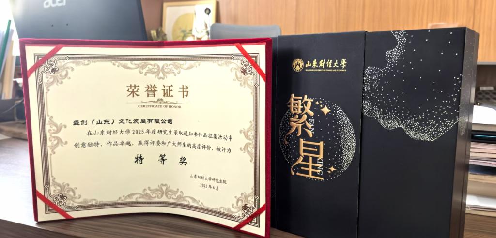 在山东财经大学2025年研究生录取通知书设计大赛中,盛兴设计团队提交的作品《立体书中的山财大》,从众多优秀作品中脱颖而出,荣获特等奖。收到母校荣誉证书的激动之余,她思绪翩跹,仿佛又回到了自己创业与MBA求学的时光。