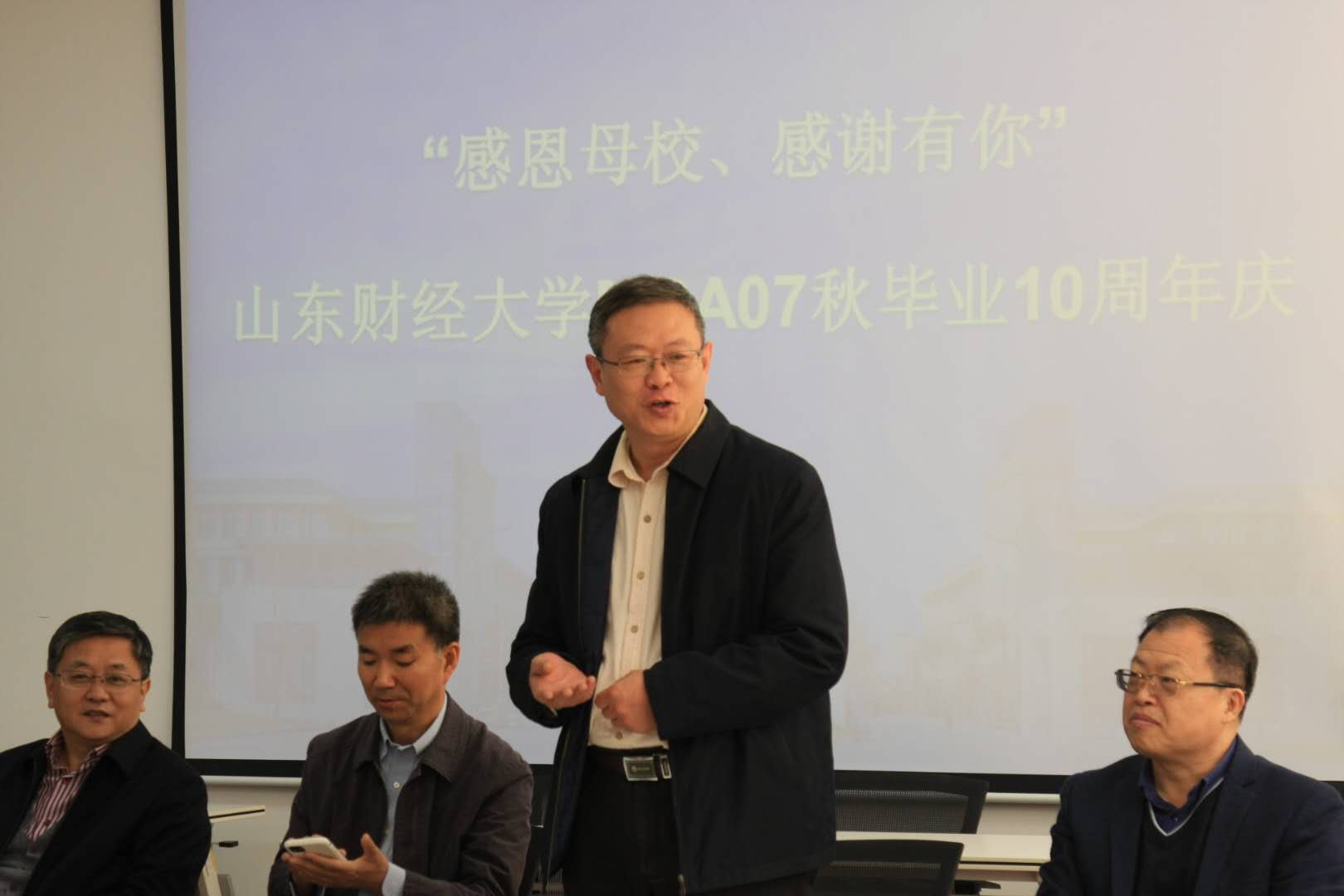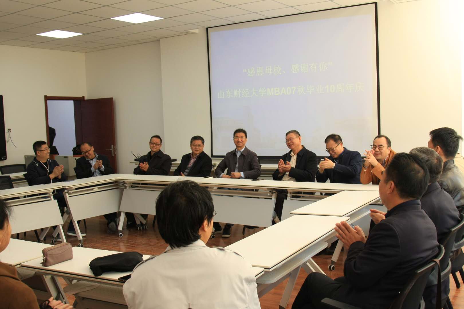 十年再聚首,共续同窗情。10月24日,山东财经大学2007级MBA秋季班20余名校友回到学校参加了毕业10周年返校聚会。MBA学院副院长罗怀敬,07级MBA秋季班班主任王瑞芳,任课老师顾天辉、陈华、杨明海、袁其刚、黄少英、杨公遂、李永春等出席了本次聚会。从相识到相伴相守,大家在十年后又相聚在母校,追忆青葱岁月,重温那段青涩而温暖的时光。