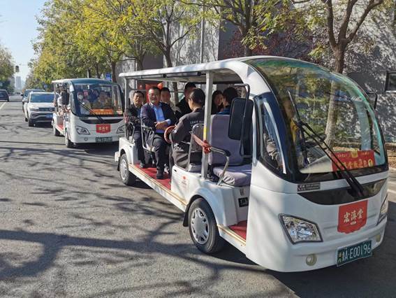 本次沙龙主会场安排在宏济堂产业园区内的新闻发布中心,大家在会场集合之后,李晓静总监带领大家乘坐观光车参观了宏济堂产业园区。