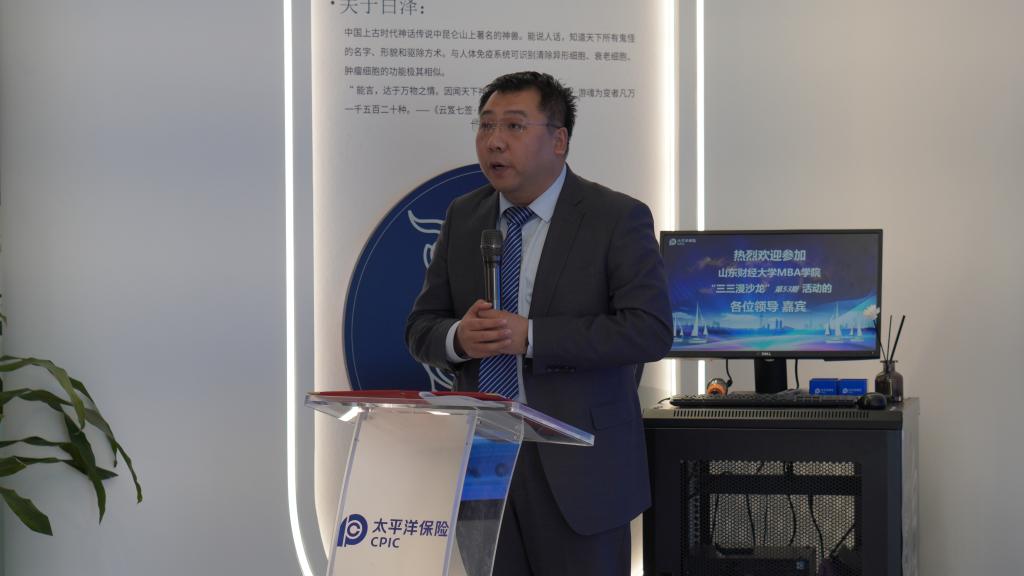 2月26日下午,山东财经大学MBA学院“三三漫沙龙”第53期在中国太平洋人寿保险股份有限公司山东分公司成功举办。本次活动以“国家个人养老金政策解读及企业与个人规划”为主题,由山东财经大学MBA校友会、济南市新兴产业协会、中国太平洋人寿保险股份有限公司山东分公司联合举办。中国太平洋人寿保险股份有限公司济南中心支公司总经理闫锡铭、副总经理张瓛,MBA学院党委书记高峰、副院长张禹,教学管理部主任孔鹏志,MBA校友会副会长袁莉,以及MBA校友30余人参加。
