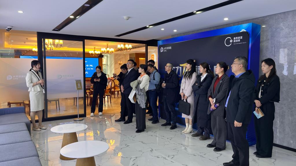 与会人员参访了中国太平洋人寿保险股份有限公司山东分公司细胞科技展厅和智能养老展厅。王君瑶详细介绍了中国太平洋人寿保险股份有限公司在细胞科技方面的创新成果与健康保障方案,以及“百岁居”居家智能养老保障方案和“太保家园”机构养老保障方案。