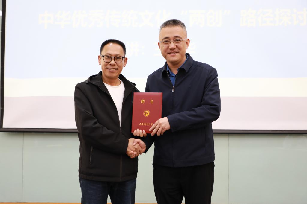 10月17日上午,“董事长进校园”第6期活动在山东财经大学舜耕校区举行。山东世博华创动漫传媒有限公司董事长、文化和旅游部优秀专家、泰山产业领军人才、山东财经大学MBA合作导师王振华做了题为《从创意到生意:传统文化“两创”路径探讨》的主题演讲。活动由MBA学院党委书记田远主持,学院师生和校友代表160余人参加活动。