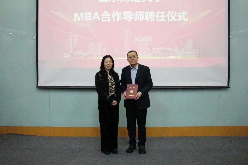 会上,还举办了校外导师聘任仪式,彭留英院长为杨辉生博士颁发了MBA合作导师证书。