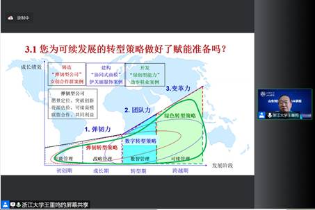 讲座内容凝练了王重鸣教授在疫情期间出版的四部专著《管理心理学》《专业技术人员创业能力建设读本》《中国企业组织变革与文化融合策略》《商业模式工具书(实战版)》的核心思想,着重介绍了高质量发展的转型策略、可持续发展的五力模型,以及新经理人才的能力建设。