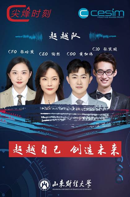 MBA超越团队成员陶然、张宸硕、黄加伟、张晗笑均为我院2021级新生,他们来自不同的行业领域,因共同的价值观和兴趣爱好走到一起,以超越自己、不断创新的理念命名组队,在此前的山东省第四届尖烽时刻大赛中荣获一等奖。