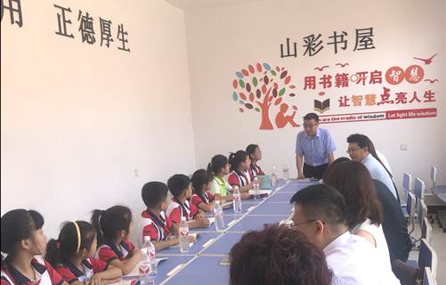 揭牌仪式后,李琪教授在“山彩书屋”为孩子们上了第一堂课。他用深入浅出的话语向孩子们诠释了读书的作用和意义,强调了理想和目标对一个人人生规划和发展的重要性,鼓励孩子们多读书、读好书、勤思考,并送上了美好的祝愿。