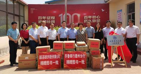 为助力慈善事业发展,关爱青少年学习成长,6月26日,山东财经大学MBA校友会在德州市庆云县成功举行“山彩书屋”揭牌仪式。自此,MBA校友会“山彩书屋”项目正式进入实施阶段。庆云县县政府党组成员孙宝华,县慈善义工志愿者联合会、慈善总会会长王桂兰,民政局局长王建岐,渤海路街道办党工委书记姚荣国,民政局副局长徐洪雷;MBA学院副院长李琪,EDP中心主任王瑞方,MBA校友会副会长袁莉、李晓星、翟士龙、王慧智、刘洪起,MBA校友会副秘书长杨旭、张宗超等参加了此次仪式。