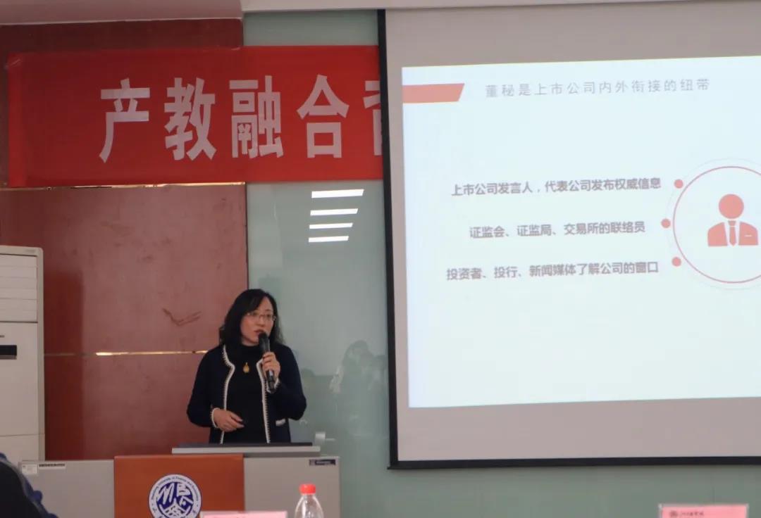 邢梅对山东上市公司现状、趋势及人才紧缺等情况进行了总体分析,李璐对董事会秘书及证券事务代表的角色定位、职责与职业展望进行了全面介绍。她们期待学校通过董事会秘书及证券事务代表培养实验班为蓬勃发展的资本市场量身打造更专业的复合型人才。毕秀玲在总结发言中强调专业硕士研究生应增强自豪感、危机感及竞争力,以提高职业胜任能力为追求目标,多些思考,多些谋略,为成为卓越管理人才储备好职业胜任能力。