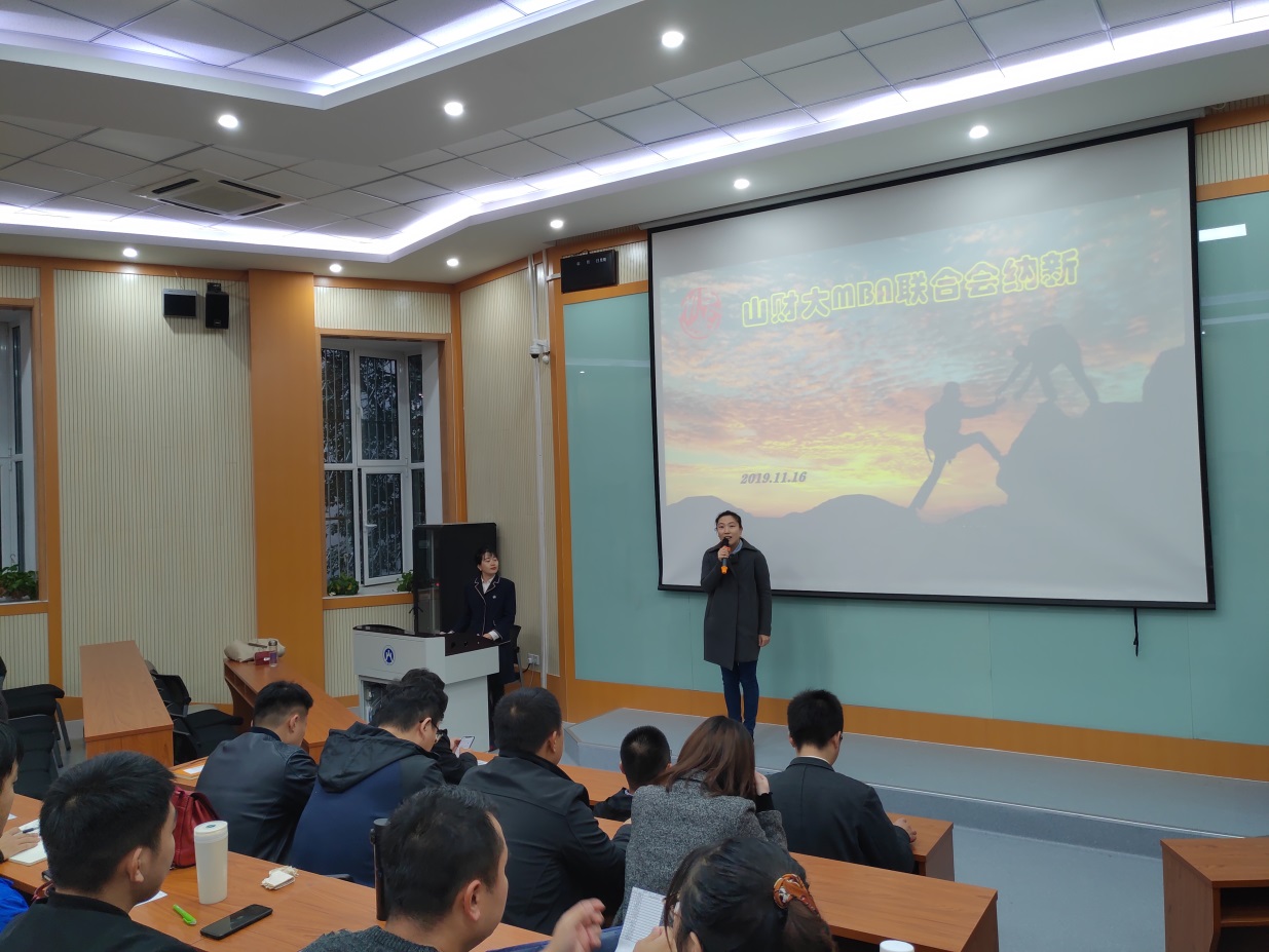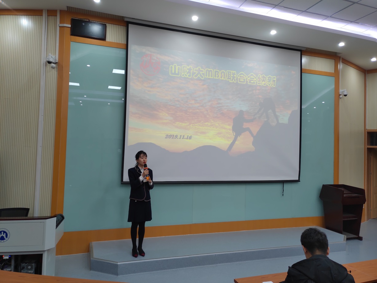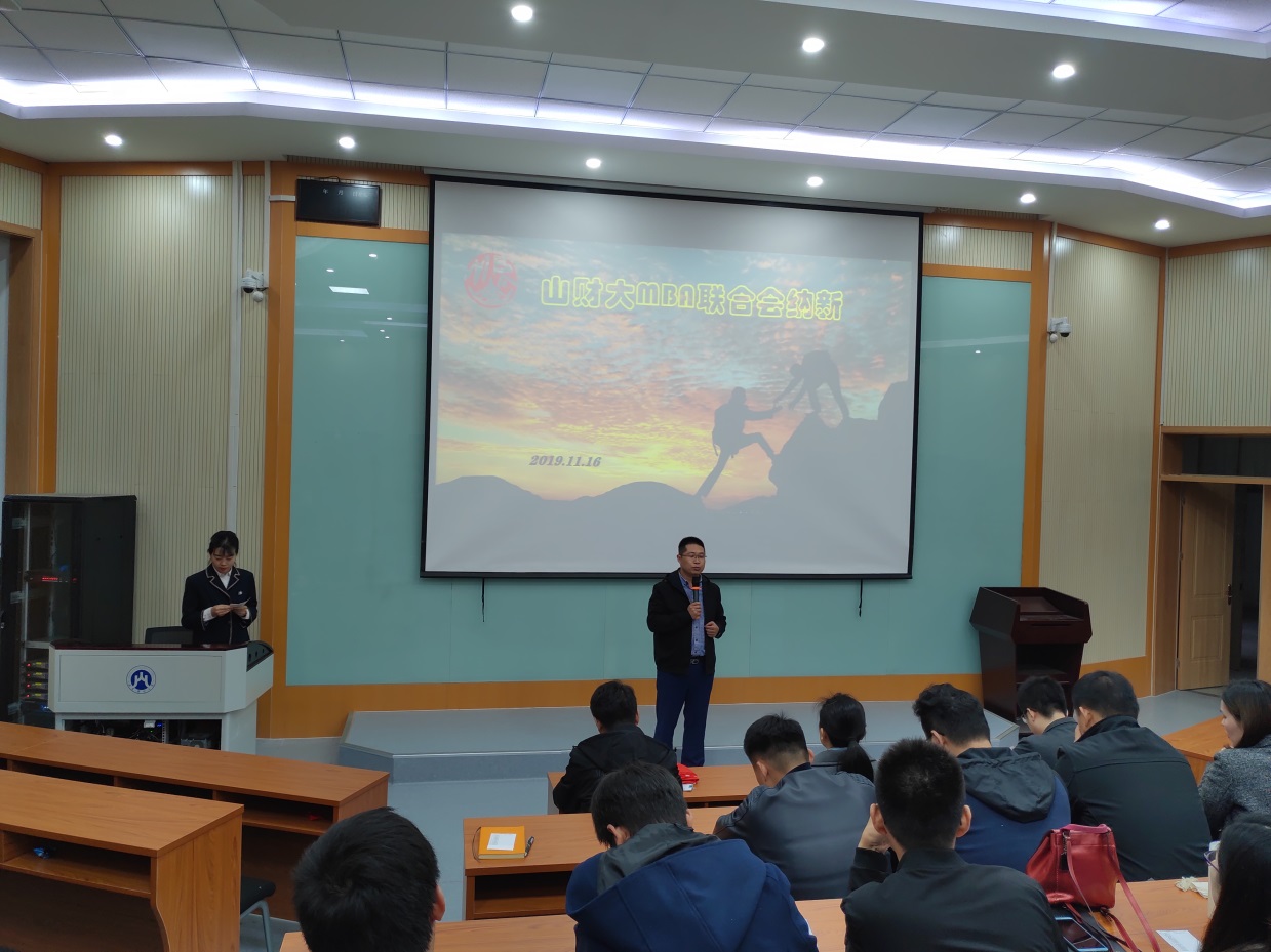 2019年11月16日,山东财经大学第七届MBA联合会纳新大会在舜耕校区第三阶梯教室举行。山东财经大学MBA学院招生与学员管理部主任汪洋,第七届联合会主席陈岗、副主席张德昭、秘书长张启峰携联合会各部部长,2019级候选人等20余人参加了此次纳新会议。
