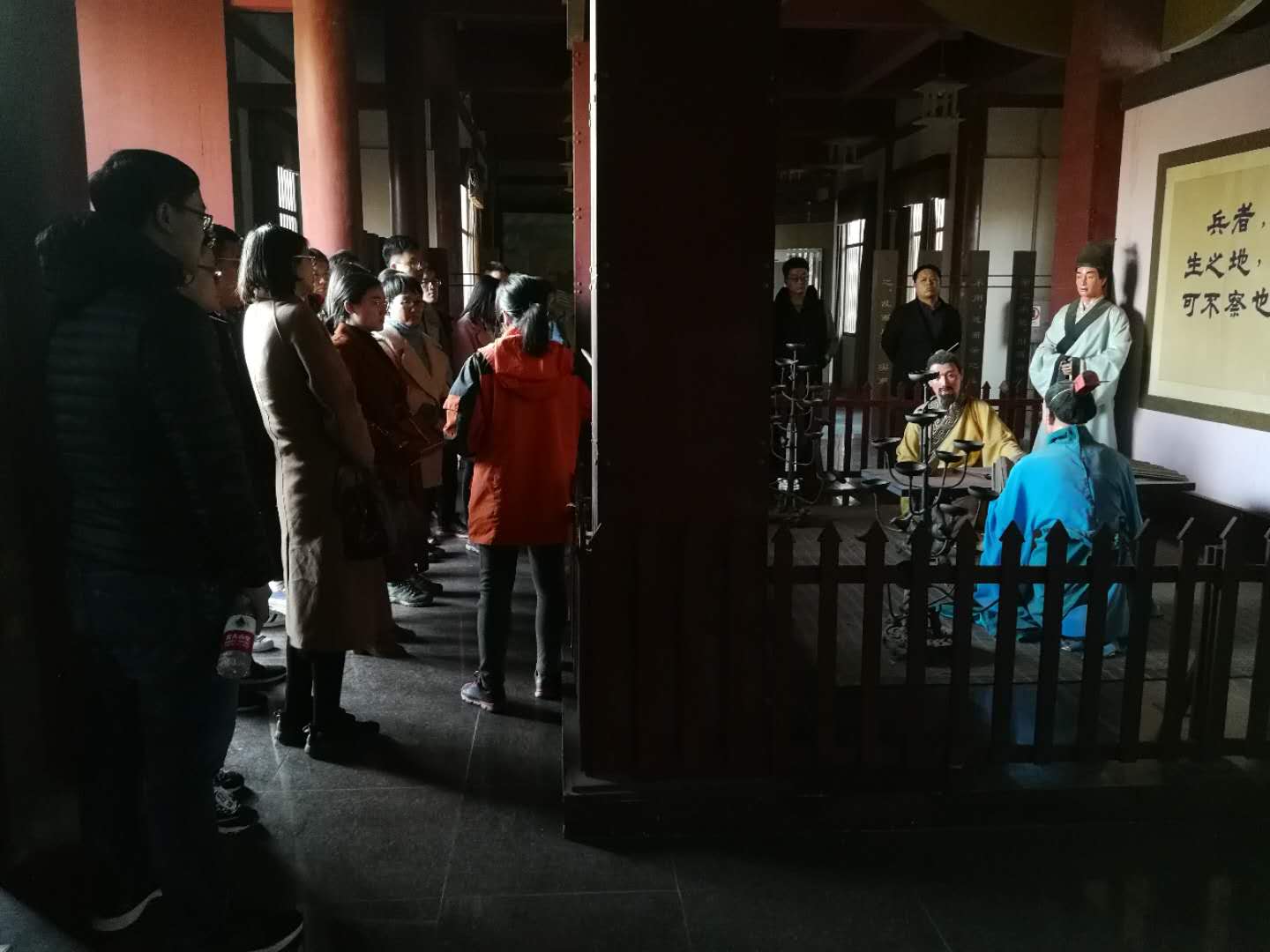 随后,全体师生聆听了惠民县孙子研究会副秘书长郭克勤专题讲座——《孙子的战略思维思想及其意义》。根据对《孙子兵法》的多年研究,郭老师将孙子的战略思维思想归结为“一本奇书,两字箴言,三大板块,四个原则和五大关系”。所谓奇,是因为它不仅是我国现存最早、质量最好的一部兵书,而且是世界影响广泛、应用最广泛的一部兵书。两字箴言即算与变;三大板块即战争观、战略思想、战术方法;四大原则为料事要准、遇事要忍、出手要狠、断后要稳;五大关系即实力与谋略、利与害、全与偏、势与节、常和变。在讲授一二三四五的过程中,郭老师旁征博引,结合生活实例深入浅出的进行了讲解。讲座之后,全体师生到孙子兵法城参访,通过《孙子兵法》十三篇的还原场景,进一步领略孙子的战略思维思想。与上午渤海活塞的战略战术突围之路,形成了跨越时代的呼应。