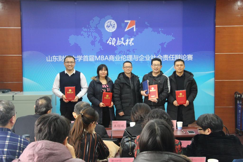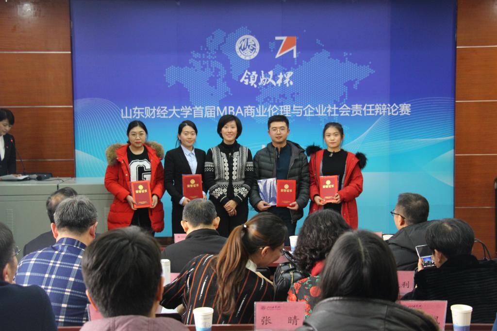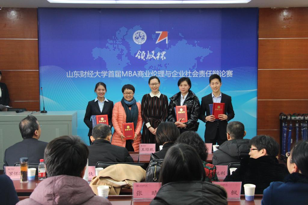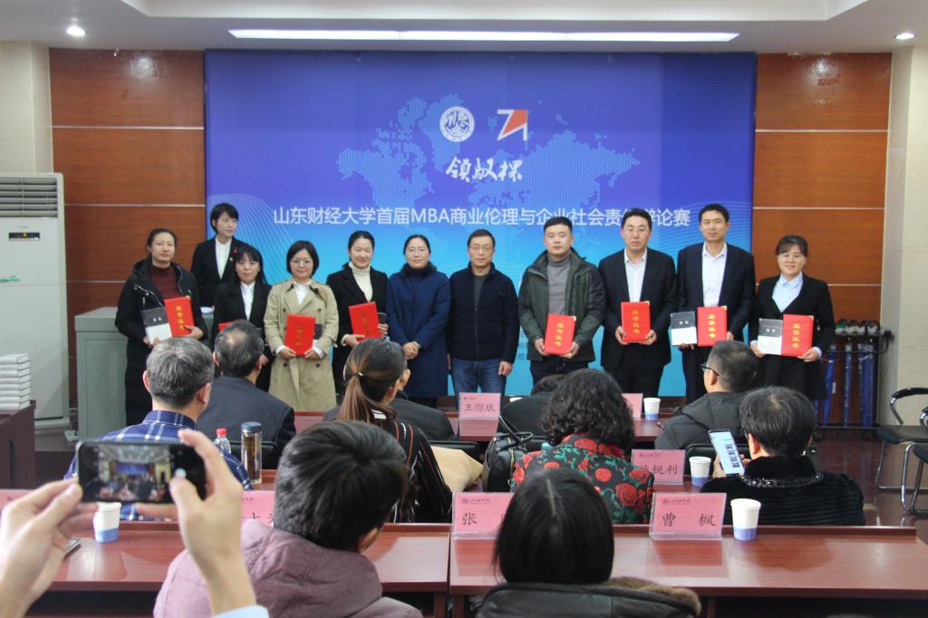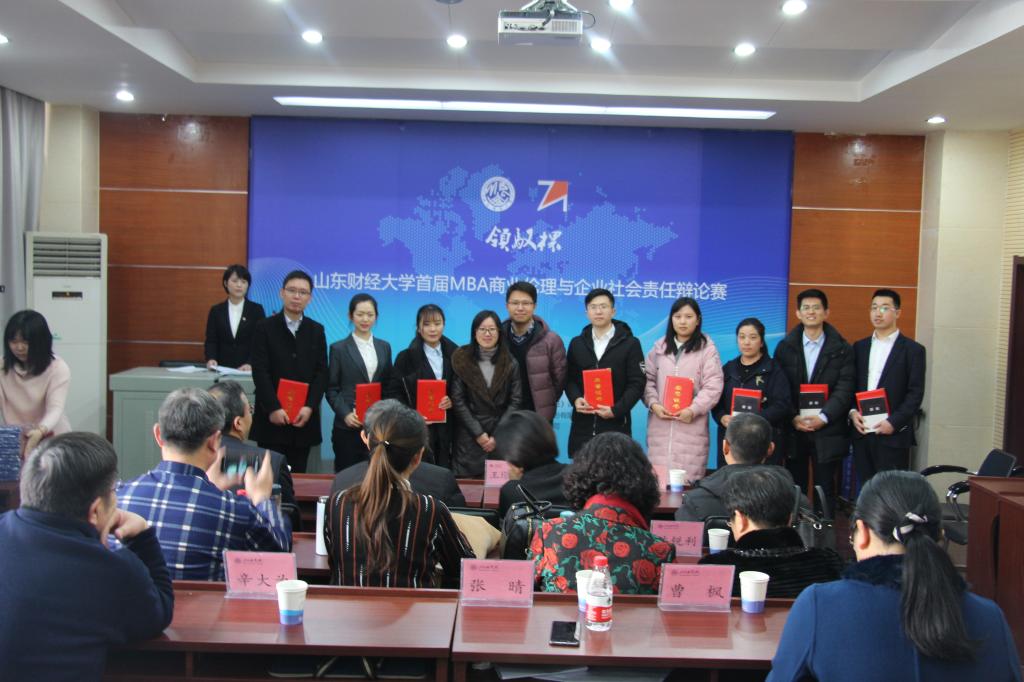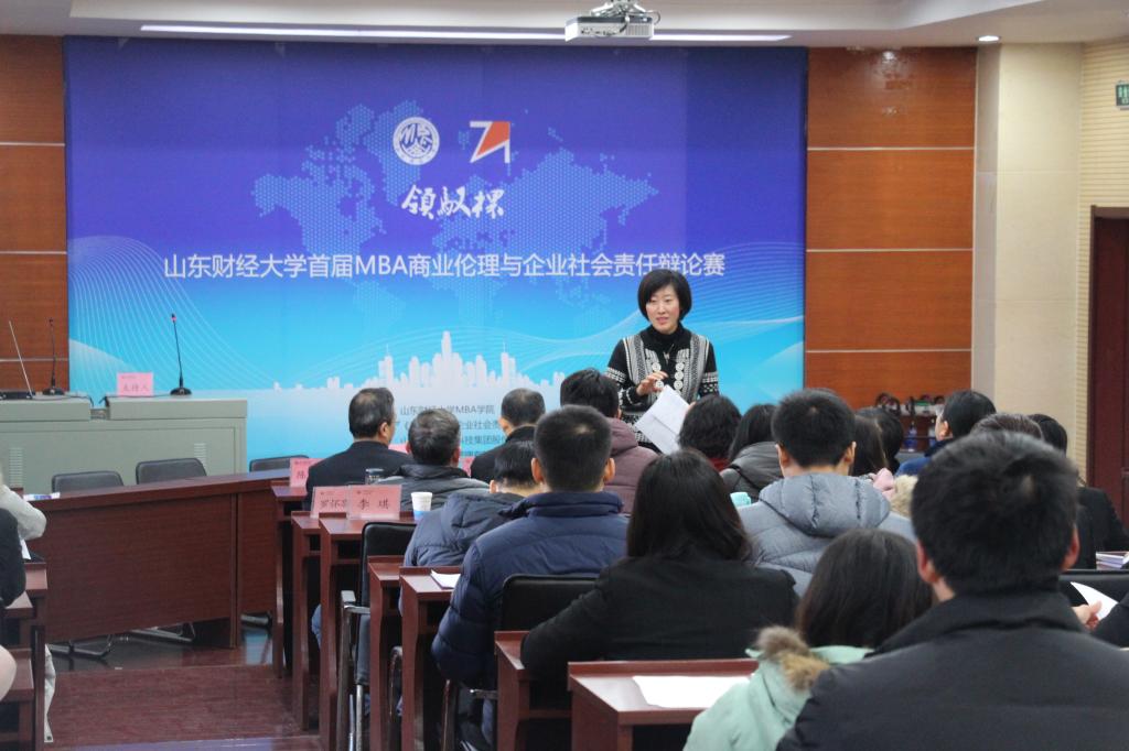 1月12日,山东财经大学首届MBA商业伦理与企业社会责任辩论赛在舜耕校区举行。此次比赛由学院主办,《商业伦理与企业社会责任》课程组承办。山东省司法厅辛大为,山东财经大学法学院王维芳教授、施锐利教授、曹枫讲师,工商管理学院陈寒松教授、张晴博士,课程组黄少英教授、王璟珉教授、刘侠副教授,学院院长陈保启,副院长罗怀敬、李琪应邀担任赛事评审嘉宾。2018级199名学员参加了此次辩论赛。