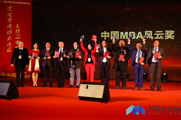 在此次MBA联盟领袖年会的奖项评选中,我院荣获“十佳特色商学院”荣誉称号;王文因对MBA联盟的突出贡献,荣获“中国MBA风云奖”,MBA联合会主席李虎荣获“MBA新锐100奖”。李琪代表学院在颁奖典礼中登台领奖,王文代表顾委会为MBA新锐100获得者颁奖。