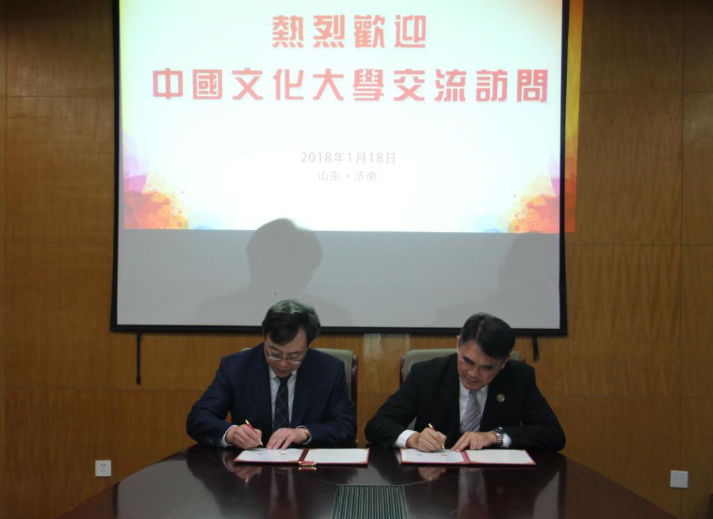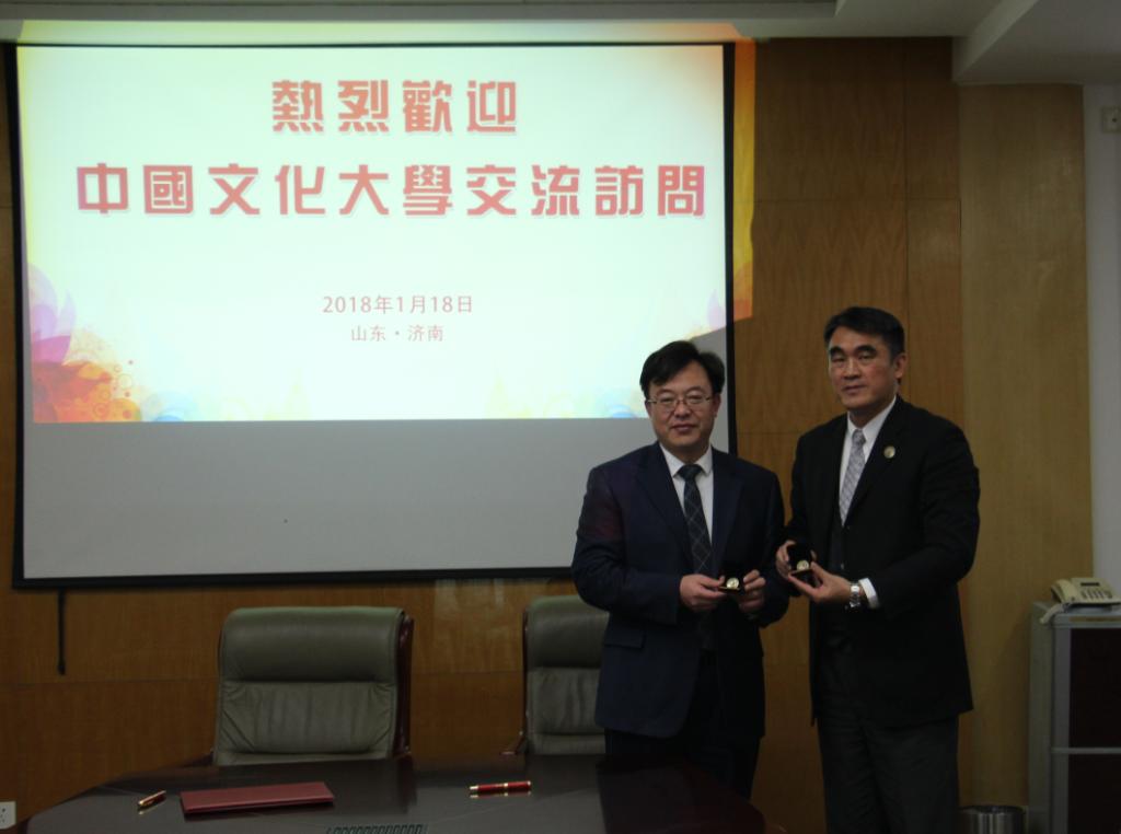 基于富有成效的议题讨论,双方对合作内容与方式达成诸多共识。会后,由王学骧和丁召华代表两校MBA学生会正式签署了《中国文化大学山东财经大学MBA联盟协议书》;并相互交换了校友/学生企业纪念品。