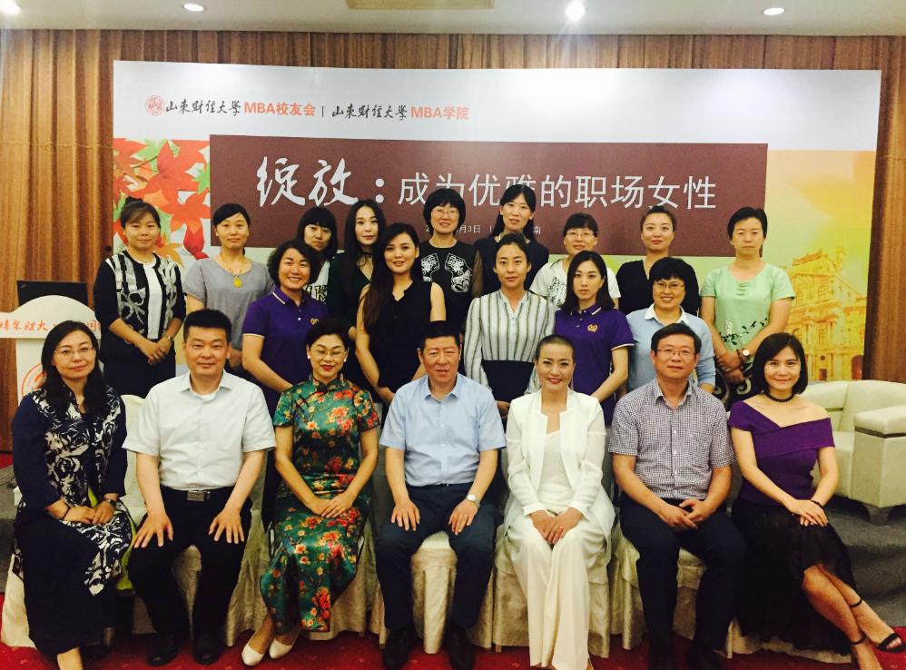 在并行的分论坛《绽放:成为优雅的职场女性》中,山东电广文化传媒有限公司总经理、E-MBA云商学院山东分院执行院长、齐鲁女仕汇会长王书仙,济南时代阳光文化传播有限公司总经理、北京领彩科技山东公司总经理、山东十七地市媒体联盟执行主任屈玉芬,2015级MBA学员、济南江航信息技术有限公司总经理、山东蓝金信息技术有限公司执行董事王珣结合自己的职场经验进行了分享。王书仙认为,优雅应该是纯然的绽放,可以先从学习优雅的新开始,从心出发树立优雅的目标,挑战自我。进而学习琴棋书画,提高自信、丰富内心,雅致生命,享受带着烟火味的诗意人生。屈玉芬分享了她的职场故事,用云淡风轻的语言娓娓道出职场中一件件急难险重的项目、难题,用实际行动诠释了优雅的职场女性的生动内涵。王珣用实际案例,教会女性朋友用法商解决问题,保护自己。现场提问互动环节中,女性校友纷纷上台发言,或表达自己的感悟收获;或结合生活实际提出疑问困惑;或真情倾诉生活中遇到的困难问题。论坛期间,学院院长陶虎、副院长罗怀敬到场,分享了对“绽放:成为优雅的职场女性” 这一主题的理解。