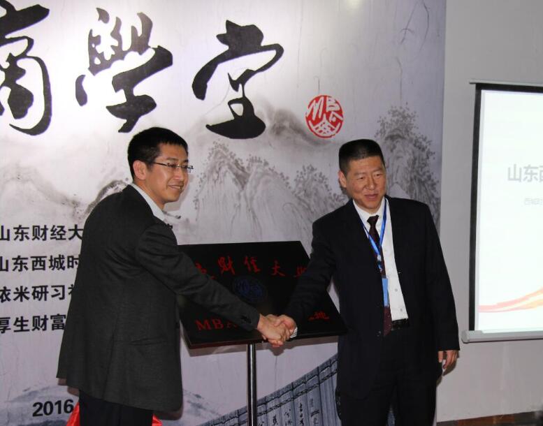 下午,举行了山东财经大学MBA实践教学基地揭牌仪式。山东财经大学MBA学院与山东西城时光文化投资有限公司共同设立实践教学基地,双方共享优质资源,加强交流和合作,实现共赢。
