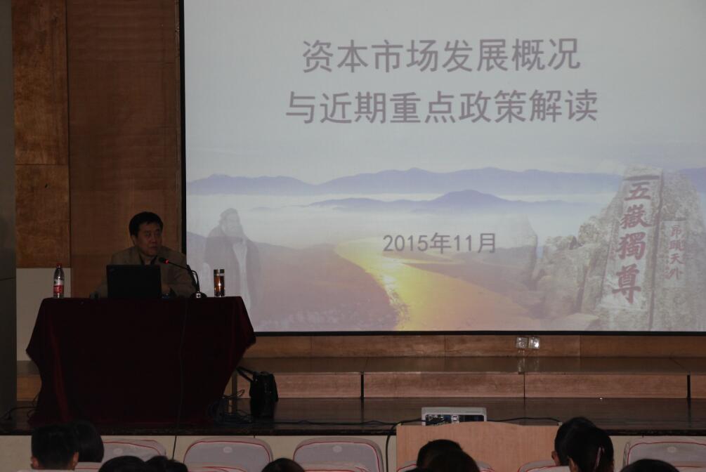 11月15日,山东证监局副局长赵洪军在燕山校区第三学术报告厅就“资本市场发展概况及近期重点政策”向2015级MBA全体学员作了详细解读。