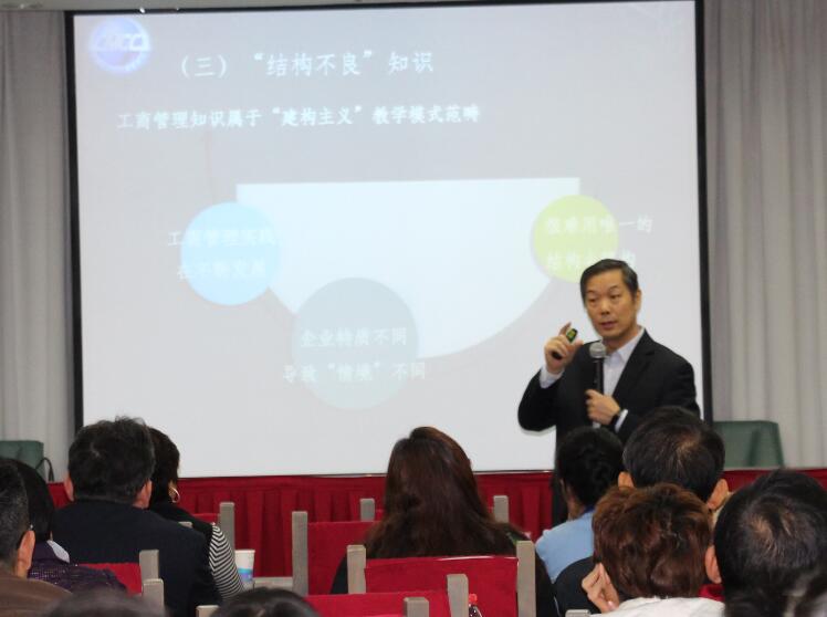 开幕式结束后,苏敬勤在第四会议室举行了关于《工商管理案例——撰写与架构》的精彩演讲,省内十所培养院校的60余名教师代表聆听了专题报告,并进行了经验交流。