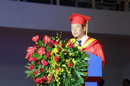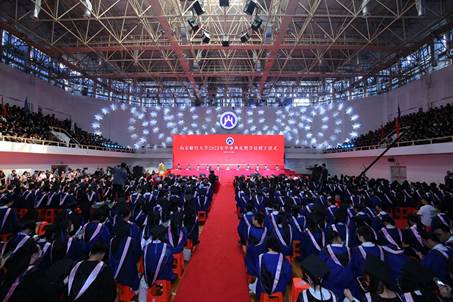 在热烈的掌声中,王邵军发表讲话,向全体毕业生表示热烈的祝贺,向为学生成长倾注心血的师长、父母与家人表示衷心的感谢,深切寄语毕业生们“奔赴山海,梦想花开”。王邵军从四个方面勉励全体毕业生:一要明道致远。只有心怀家国,将个人行为置于国家与社会整体发展中,才能获取意义赋予和价值评判,只有超越自我局限,才能依托时代,发挥出个人最大能量。要坚守价值。要情系四海苍生,常食人间烟火,感受社会之需,激发变革之志。要保持理性,保持独立思考习惯,屏蔽杂音,坚持真理,明辨是非,从事物本质去看问题。二要厚学思变。要锻造审辩式思维,学会从不同角度看待问题;要净化内心,保持想象力和好奇心,敢于创新创造;要在专业甚至学科领域,建立起自己的稀缺性和比较优势,满足更深层次的需要。要牢记“克明峻德 格物致知”的校训精神,更新知识结构,提高创新能力,用知识改变命运、成就未来。三要克难成事。不论遭遇多大的风雨,只要眼里永远有光,不抱怨、不气馁、不退缩,矢志不移地走下去,这一路的失败与磨难,终将成为抵达理想之地的驿站与财富。四要和合达人。和合是手段,和者悦,合者来;达人是过程,己欲达,先达人。要学会打开格局,尊重差异,有包容不同意见的胸怀和格局。要多考虑他人感受,认识个人实力才是人际关系的基础,并将其作为自己人生征途的通行证,活出高度,走得更远。