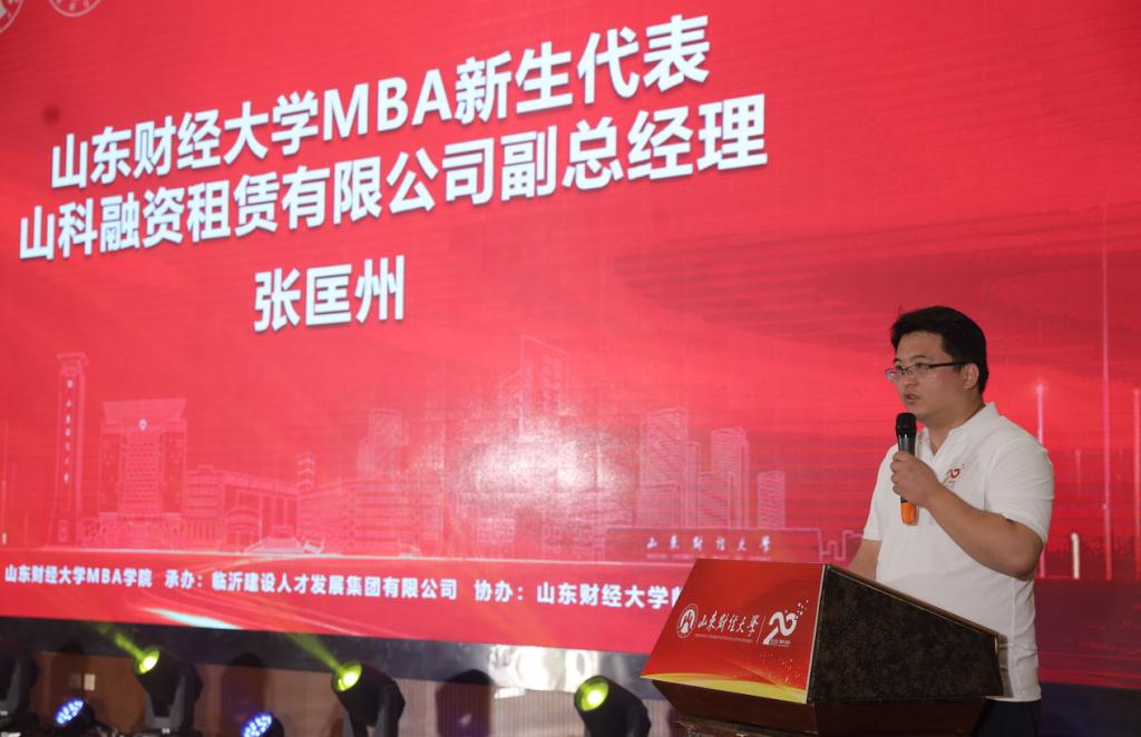 在校生代表、齐鲁制药济南分公司副总经理陈广平,新生代表、山科融资租赁有限公司副总经理张匡州代表新生发言。他们表示,在经历过工作与社会磨砺后,更加清楚学习的意义,将牢记“克明峻德 格物致知”校训,做锲而不舍、心无旁骛的财大人,做心怀信仰、勇于担当的追梦人。