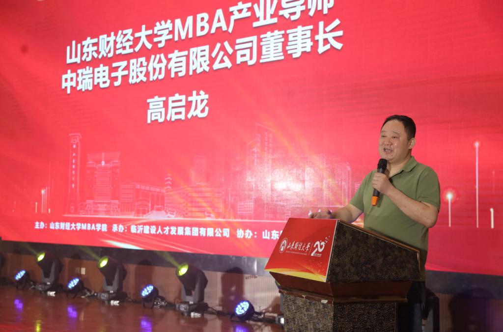 徐鹏在致辞中,希望大家立足中国实践,聚焦中国传统文化,实现管理知识的交叉与融合、继承与创新。不断拓展视野、更新观念,深入理解新时代的商业世界,保持与时俱进,勇于自我革新。祝愿学员在山东财经大学这片沃土成人达己、梦想花开!高启龙在致辞指出,经过20年发展,中瑞电子已经成为国家级专精特新小巨人企业和高新技术企业,管理课堂的教育让自己受益匪浅,管理理论的应用有效推动了企业的创新与转型发展。作为MBA产业导师,希望能够将管理经验带入山东财经大学的MBA课堂,与大家相互交流、共同发展。