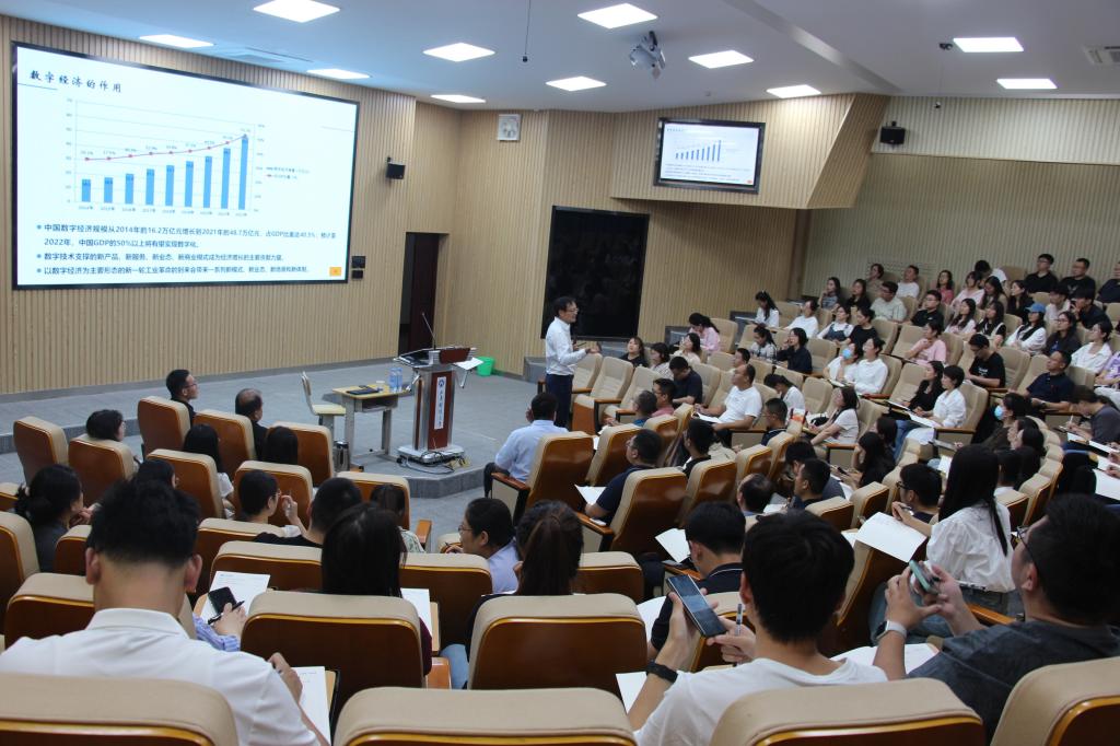 9月22日下午, 对外经济贸易大学国际商学院院长陈德球教授受邀到MBA学院做题为《数字经济时代下的公司治理》的专题报告。工商管理学院副院长徐鹏、工商管理系主任陈庆江,MBA学院2023级MBA学员共120余人参加。报告会由MBA学院副院长孙文刚主持。