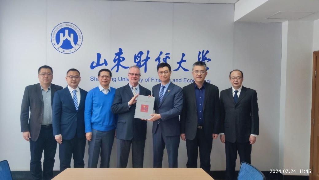 杨春晓对客人来访表示欢迎,详细介绍了学校近年来国际化方面所取得的成绩并回顾了两校十一年的合作历史。他表示,两校合作开展MBA项目已近十年,在师资队伍建设、学生交流培养等方面开展了实质性合作,推动了山东财经大学的国际化办学水平,为山东省经济发展输送了一大批卓越的管理人才。田远介绍了MBA学院的基本情况和发展规划,他表示,密苏里州立大学商学院是美国规模最大的商学院之一,已经通过AACSB认证,期待同密苏里州立大学商学院在MBA联合培养、师资队伍建设、国际化课程建设、国际认证等方面开展更加深入、更富成效的交流合作,推动MBA教育再上新台阶。雷根非常高兴五年后能再度访问我校,对于我校在国际化方面所取得的成就表示祝贺,对我校的热情接待表示感谢。他介绍了密苏里州立大学及商学院的基本情况,针对MBA项目的课程设置、考核方式、师资情况、企业实践、后勤支持等方面做了详细说明。双方对MBA硕士项目细节进行一一核对,并在教师派遣和AASCB认证等方面达成合作意向。会后,雷根一行参观了海岱美术馆。