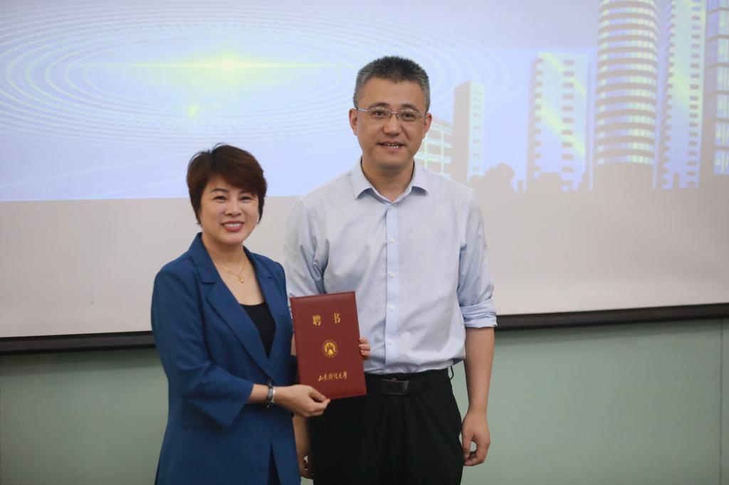 互动交流环节,在场师生和企业代表积极提问,黄淑妮一一作答,现场气氛热烈。据悉,接下来,“董事长进校园”活动将持续围绕企业创新创业之路、数字化转型、资本赋能、产业链协同、ESG与可持续发展等主题,诚邀更多优秀企业家走进校园,多维度挖掘鲁商文化内涵,立体式弘扬鲁商企业家精神,构建教育、科技、产业深度融合新生态。期间,还举办了校外导师聘任仪式,黄淑妮受聘MBA产业导师。
