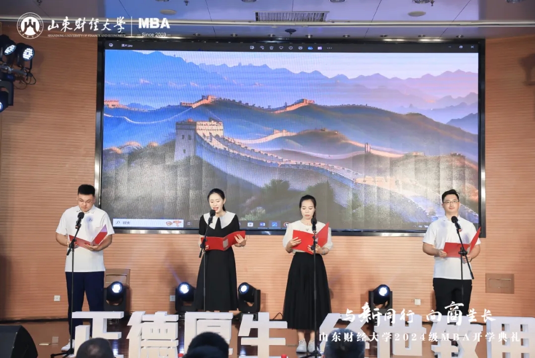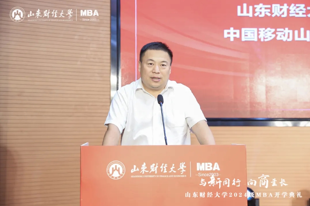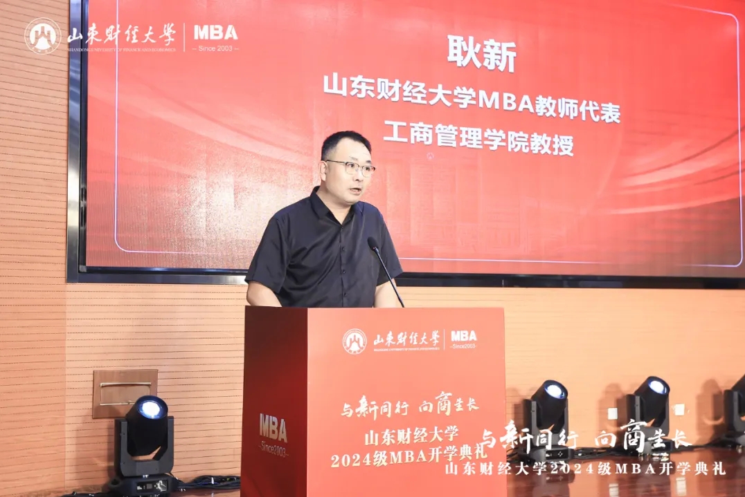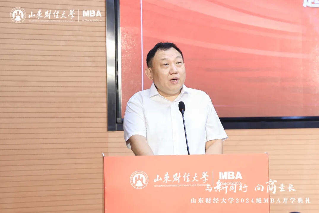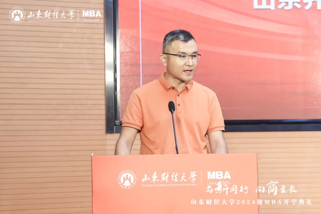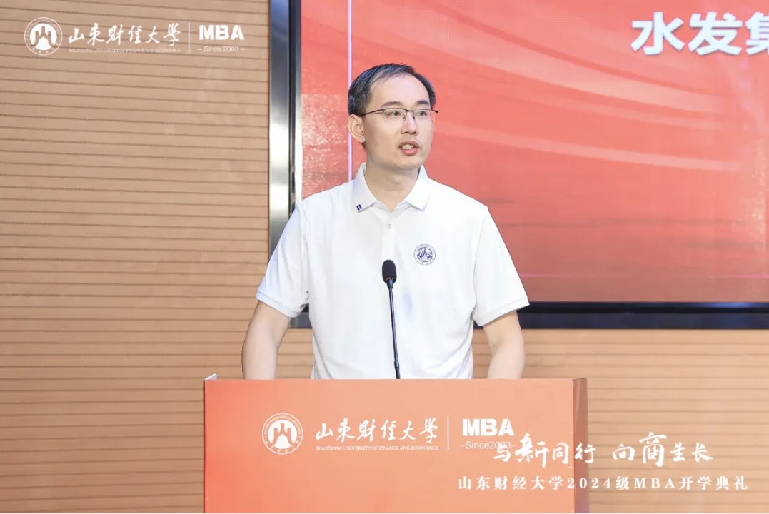 MBA教师代表、工商管理学院教授耿新表示,管理有其“道”,也有其“术”,同学们要秉承“克明峻德,格物致知”的校训精神,赓续前行,做到学有所获、学有所用、学有所成。校外导师代表杨斌指出,我们正处于平台经济创新发展、数实经济深度融合、自助服务快速兴起的新时代,希望大家拥抱变化,树立前瞻思维、系统思维、创新思维、有解思维。校友代表房伟表示,MBA学习是一场持续精进、追求卓越的过程,要始终保持对知识探索的热情和敬畏,在实践中增长才干、创造价值。MBA在校生代表、山东齐鲁文旅集团投资管理中心总经理冯勋涛向2024级MBA新生表示祝贺,勉励大家珍惜校园时光,夯实专业基础,在勇敢追梦的征程上,铸就更加辉煌的自己。MBA新生代表、水发集团有限公司投资发展部副部长田浩表示,将坚定勤学笃行,勇担使命责任,努力成长为德才兼备的新时代管理人才。