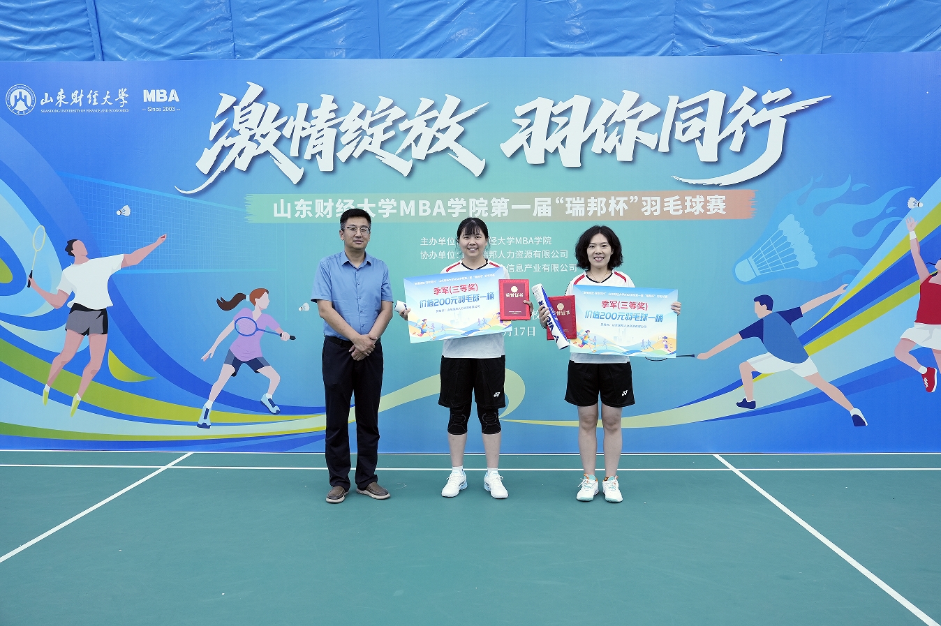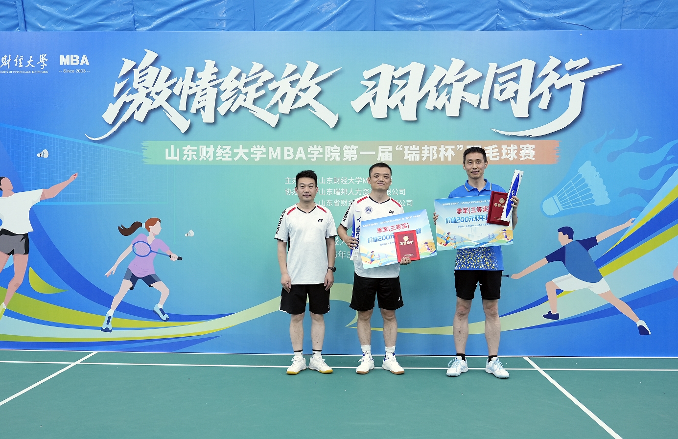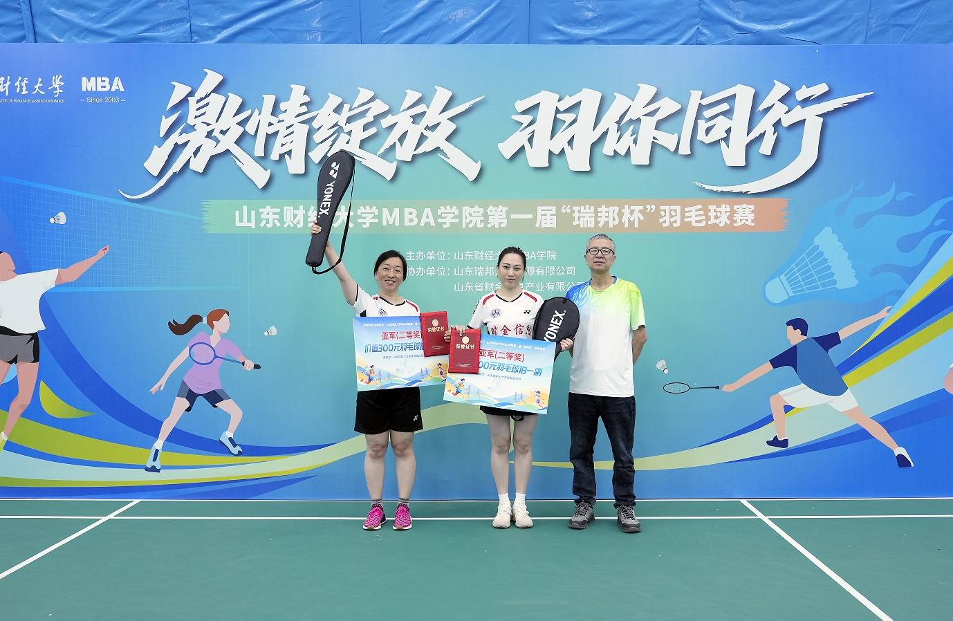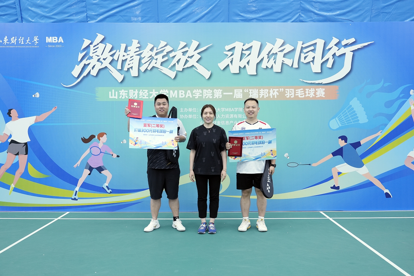 5月17日,由MBA学院主办,山东瑞邦人力资源有限公司、山东省财金信息产业有限公司协办的首届“瑞邦杯”师生羽毛球赛在燕山校区落下帷幕。比赛以“激情绽放、羽你同行”为主题,吸引了40余名MBA校友、在校生、授课教师、学业导师及教职工踊跃参与。副校长赵奎皓,MBA学院党委书记高峰、院长彭留英,山东瑞邦人力资源有限公司总经理狄彦国,山东省财金信息产业有限公司董事长王义辉等嘉宾出席闭幕式,并为获奖队伍颁奖。