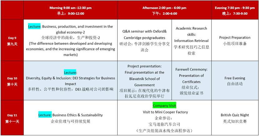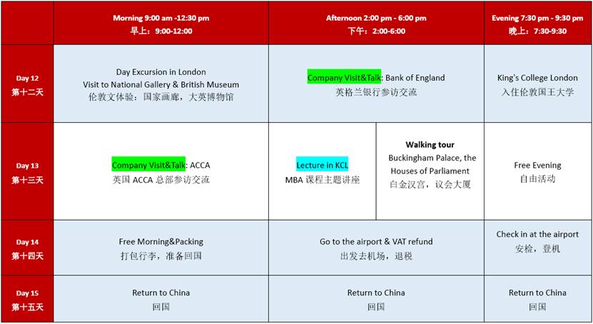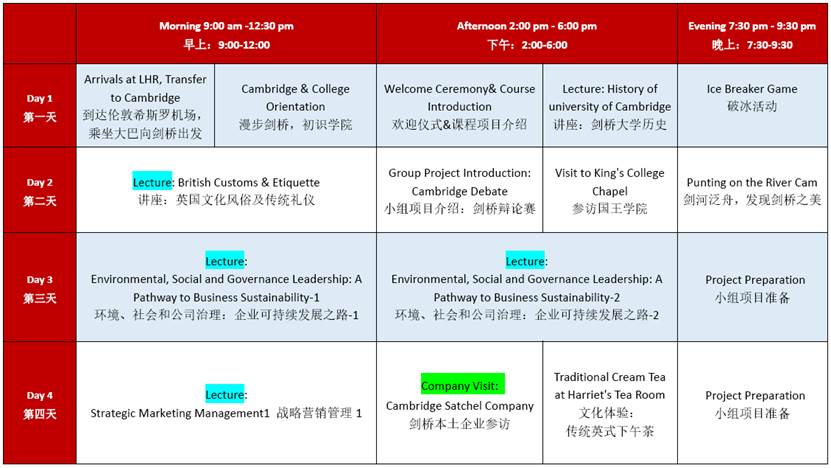备注:课程及活动安排的具体内容及顺序,以项目出发前发放的最终版本为标准,课表仅作为初步呈现的样表。
