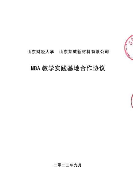 山东财经大学 山东莱威新材料有限公司 MBA 教学实践基地合作协议
