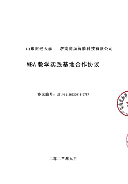 山东财经大学 济南商汤智能科技有限公司 MBA 教学实践基地合作协议