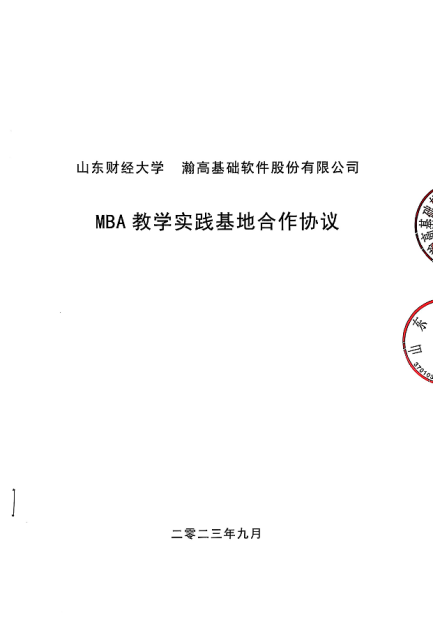 山东财经大学 瀚高基础软件股份有限公司 MBA 教学实践基地合作协议