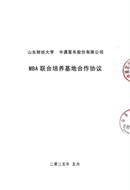 山东财经大学 中通客车股份有限公司 MBA 联合培养基地合作协议